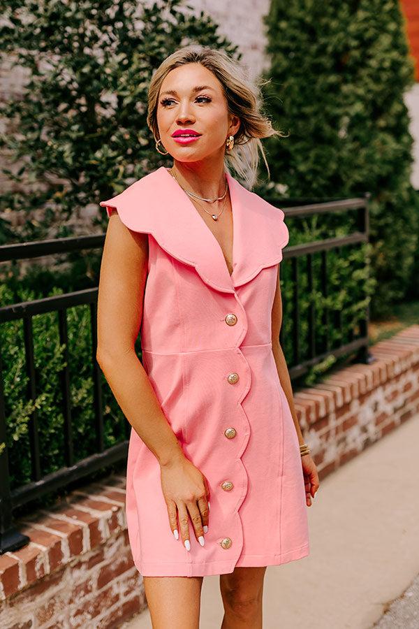 - This fabulous dress is classy with a touch of sassy! - Stretchy material - A built-in bodice lining - A v-cut neckline with an oversized scalloped collar - A button closure front featuring gold buttons and scalloped detail - A sleeveless cut - A flattering silhouette that tends in a mini dress length hemline