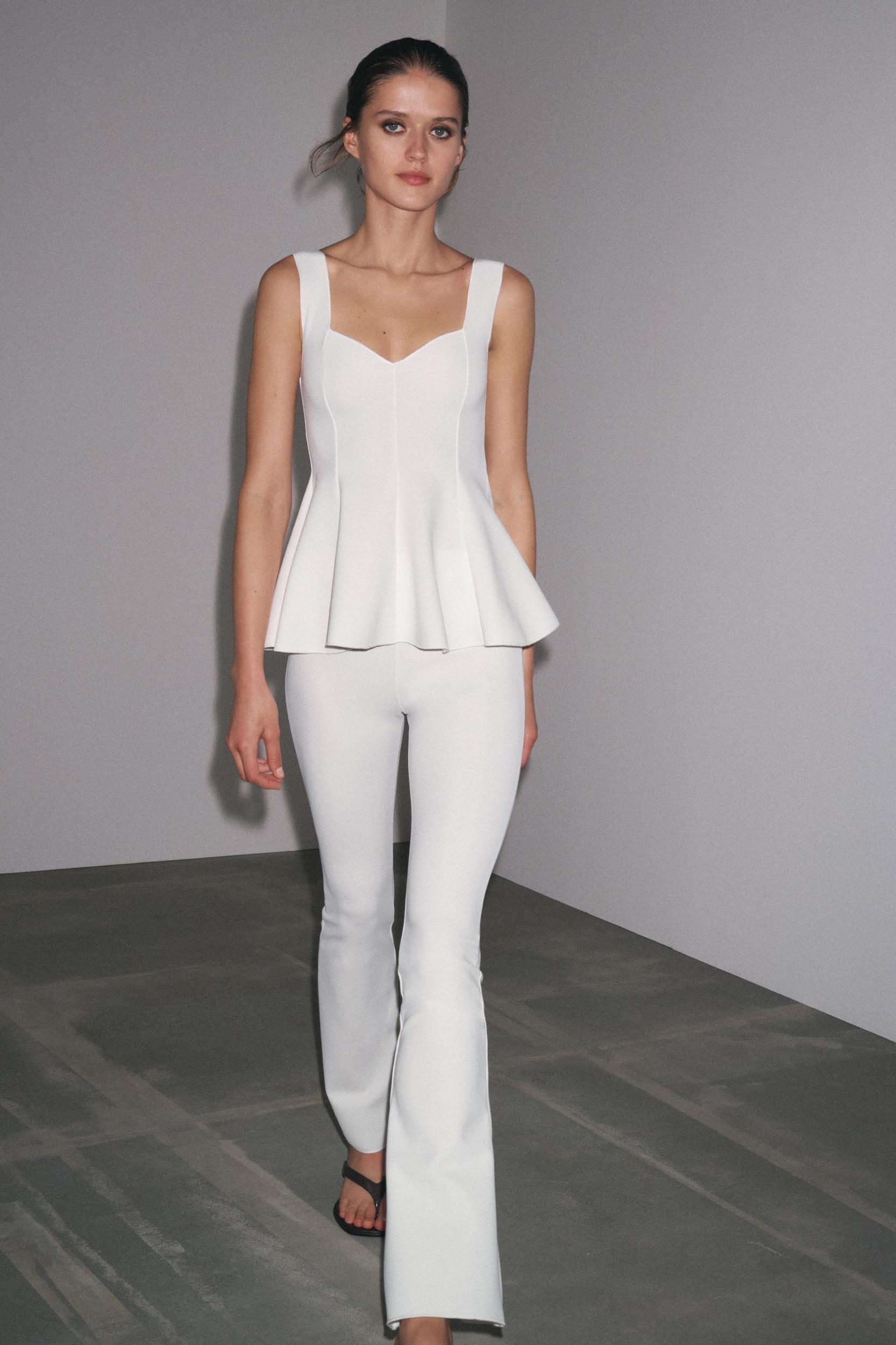 Top made in stretch fabric. Round neckline and wide straps. Peplum hem.