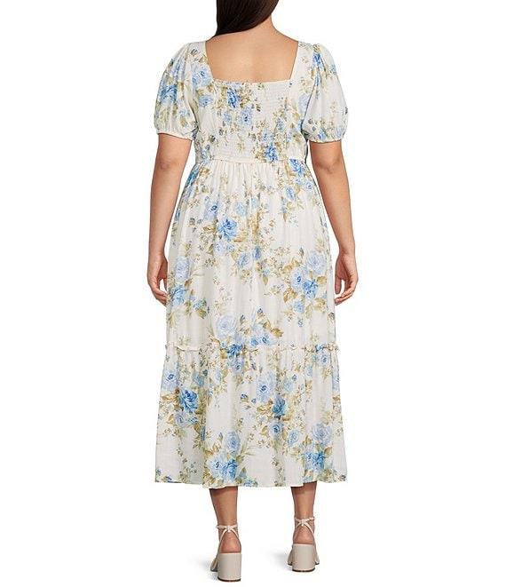 From Perch by Blu Pepper Plus, this dress features: Allover floral print Square neck Short sleeves Tier ruffled midi skirt Pullover construction Rayon/linen Hand wash/lay flat to dry Imported.