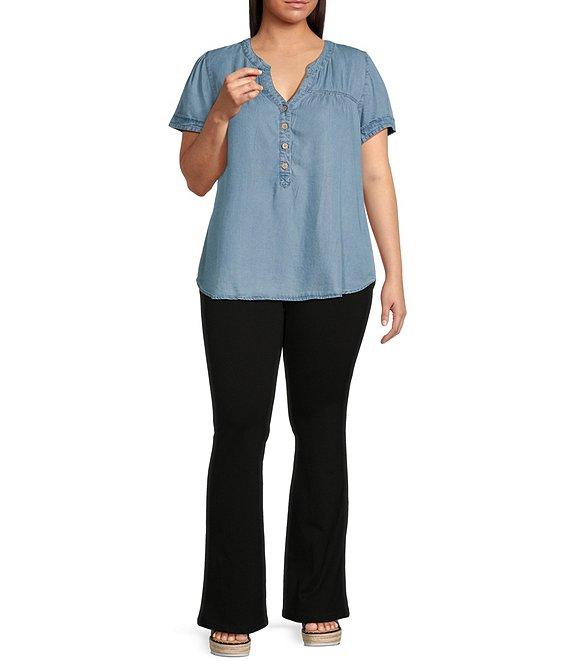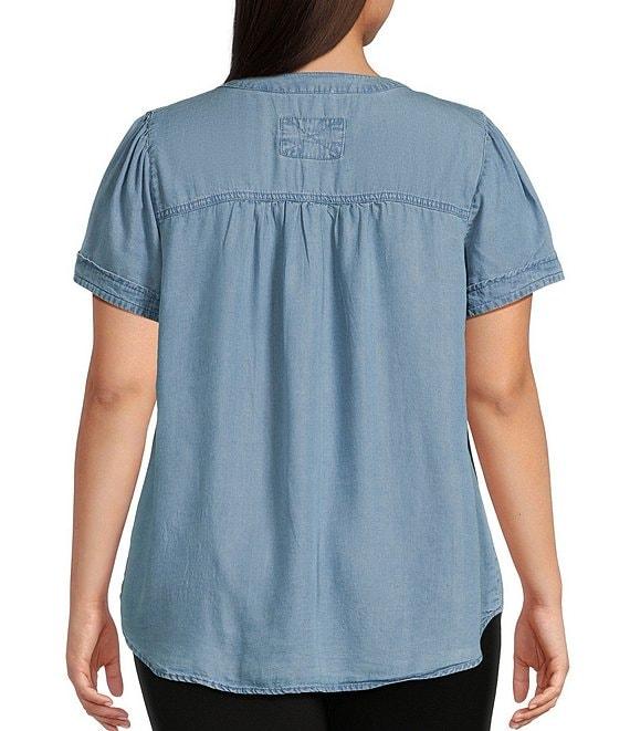 Perch By Blu Pepper Plus Size Half Button Yoke Short Sleeve Blouse