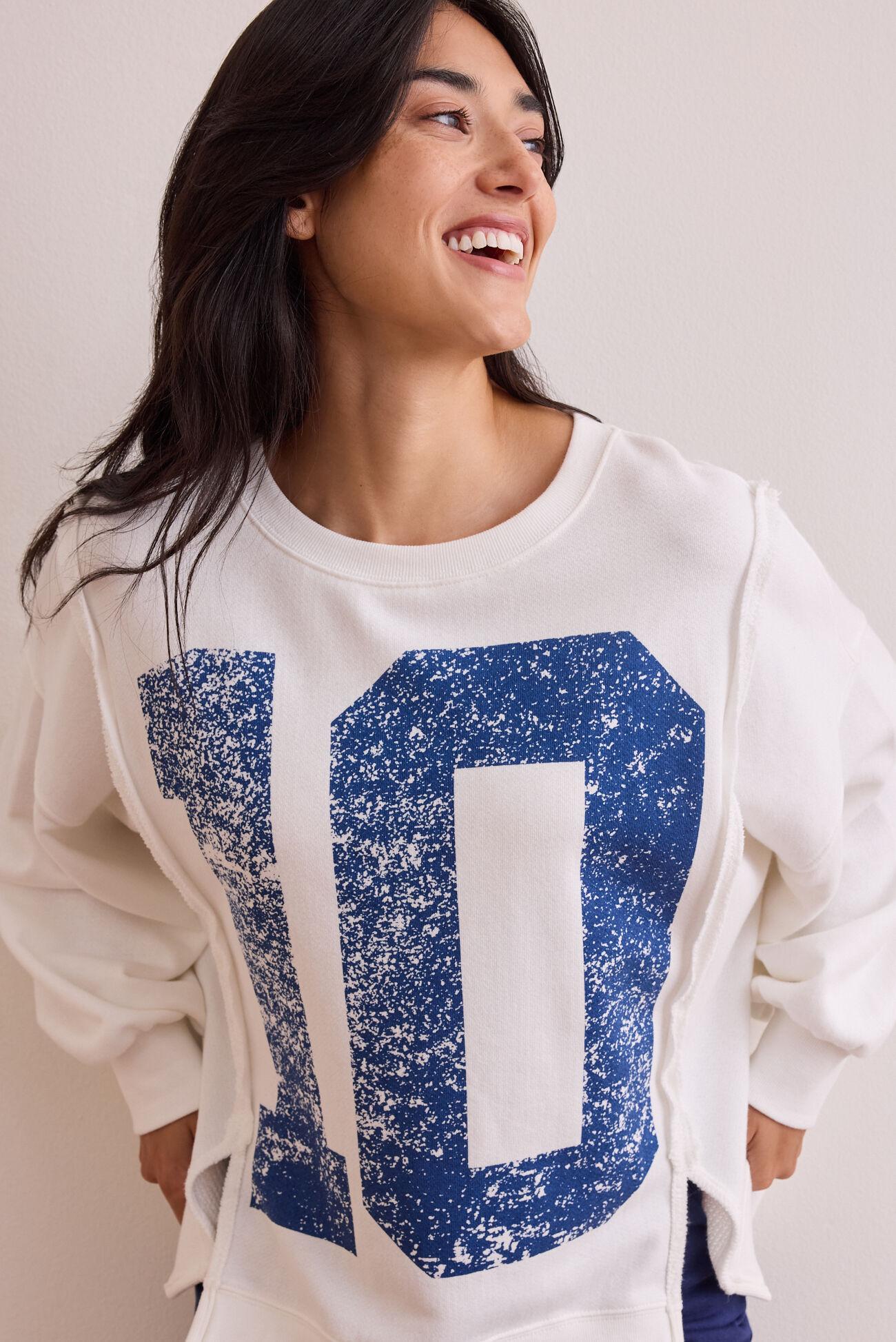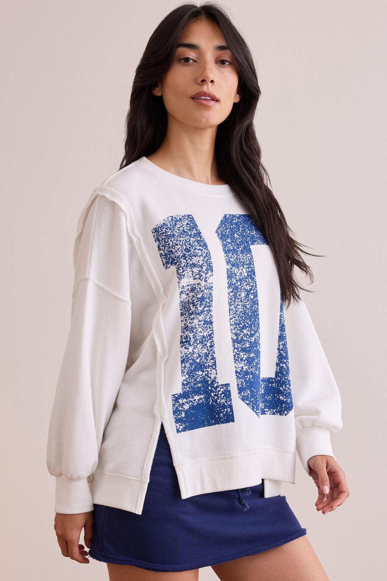 Wrap yourself in comfort with this super soft French terry pullover, featuring a cute graphic that radiates perfect tens all around. It's the ultimate way to rock a winning look with effortless, feel-good style.