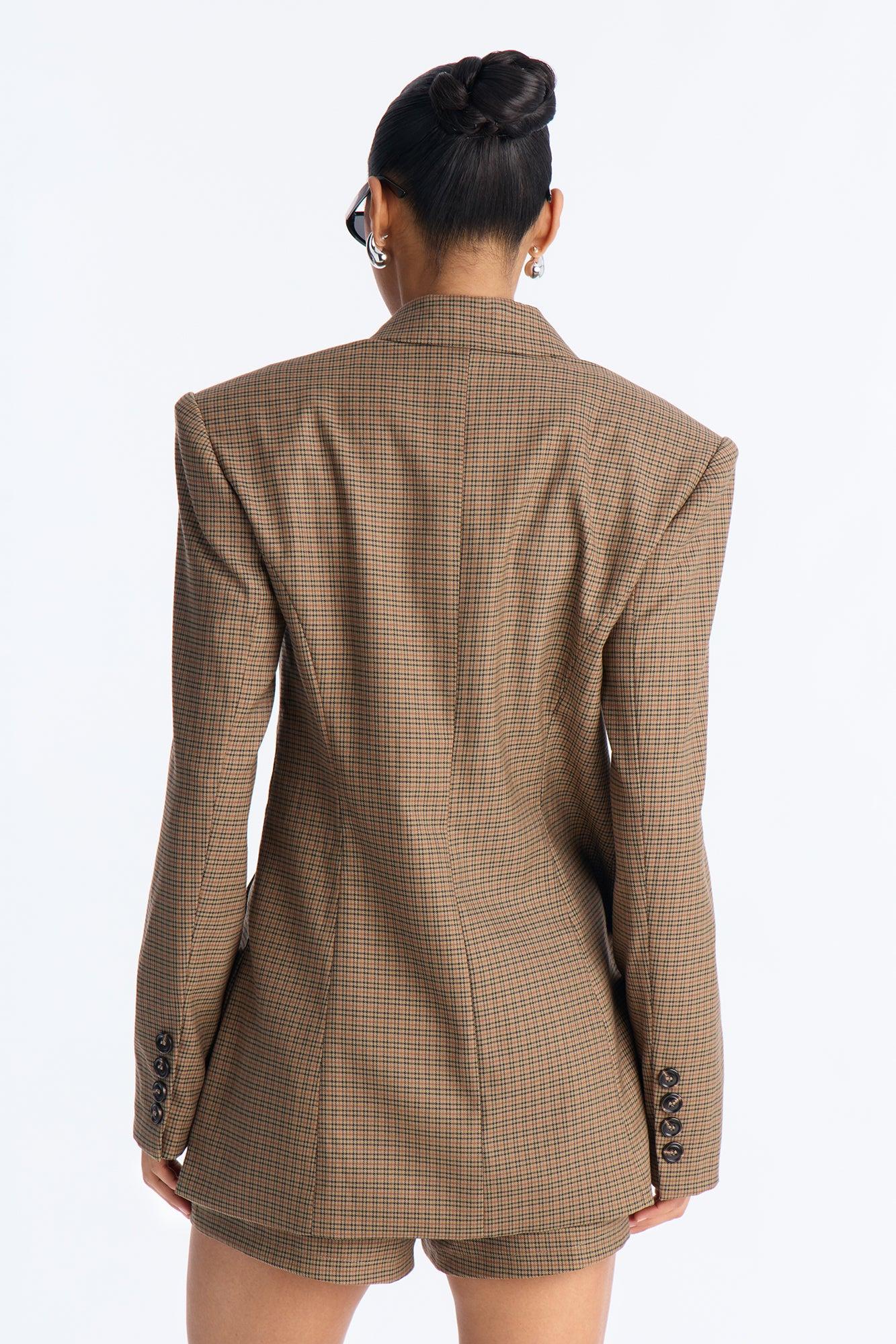 Perfect And Polished Plaid Blazer Short Set - Taupe/combo Female