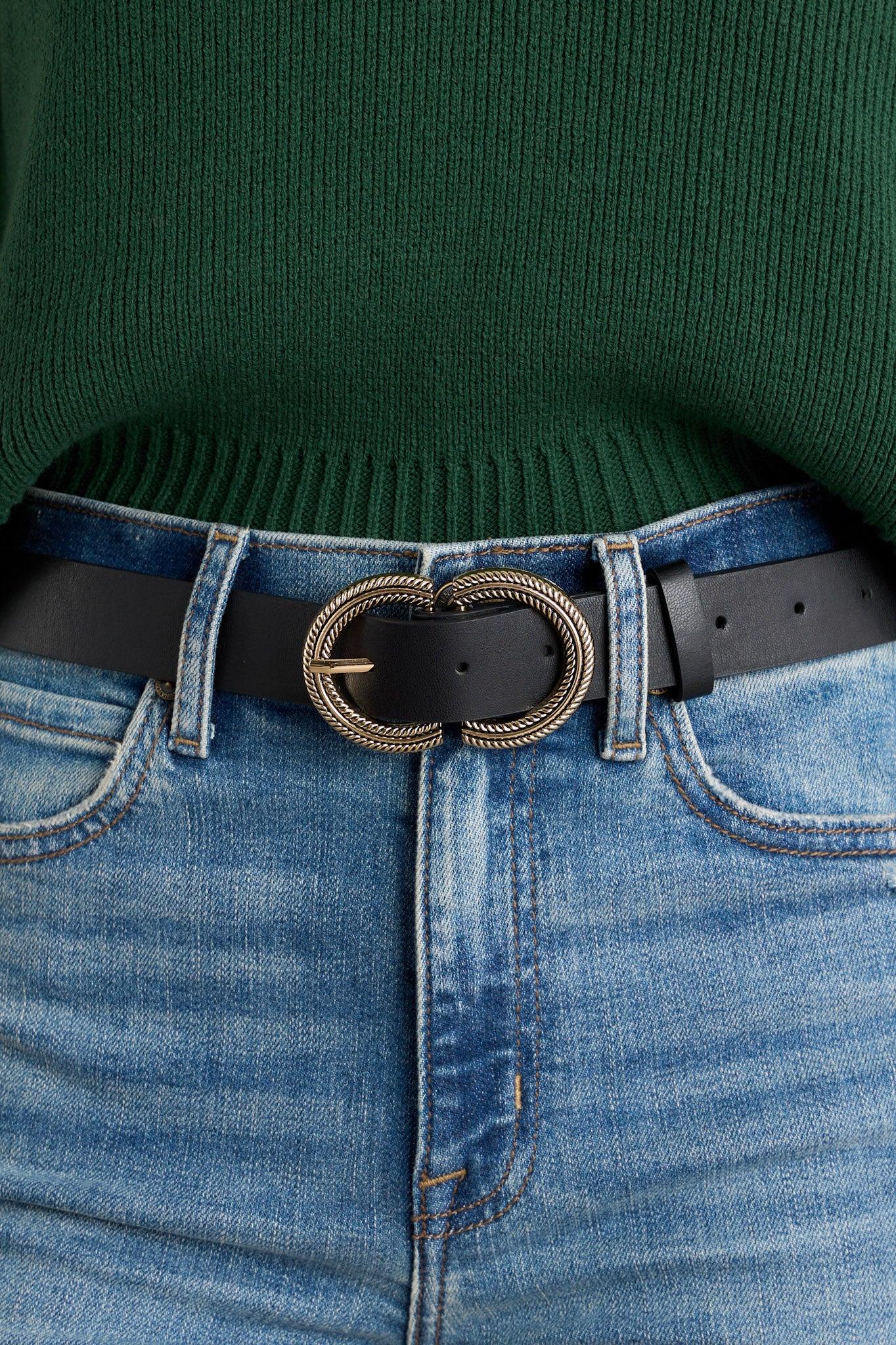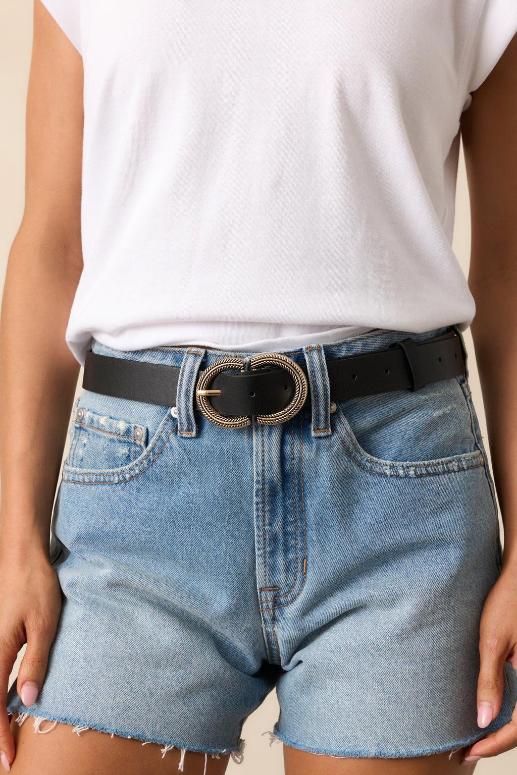 You already know it, honey! Yes! This black belt is a staple and you just can’t do without it. Rain or shine, this one will always have your back. Black belt features a half circle buckle closure, a single prong, a soft exterior, and black gold hardware.