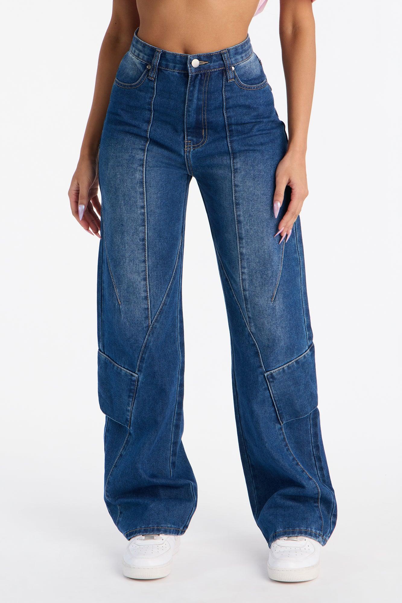 Available In Dark Wash. Straight Leg Jean 4 Pocket Back Flap Pockets Seaming 11" Rise 32" Inseam Non Stretch Disclaimer: Due the To The Specialized Dye Process, Loose Dye Can Stain On Contact. Do Not Wash with Other Garments 76% Cotton 24% Polyester Imported California Proposition 65WARNING: Cancer and Reproductive Harm - www.P65Warnings.ca.gov.