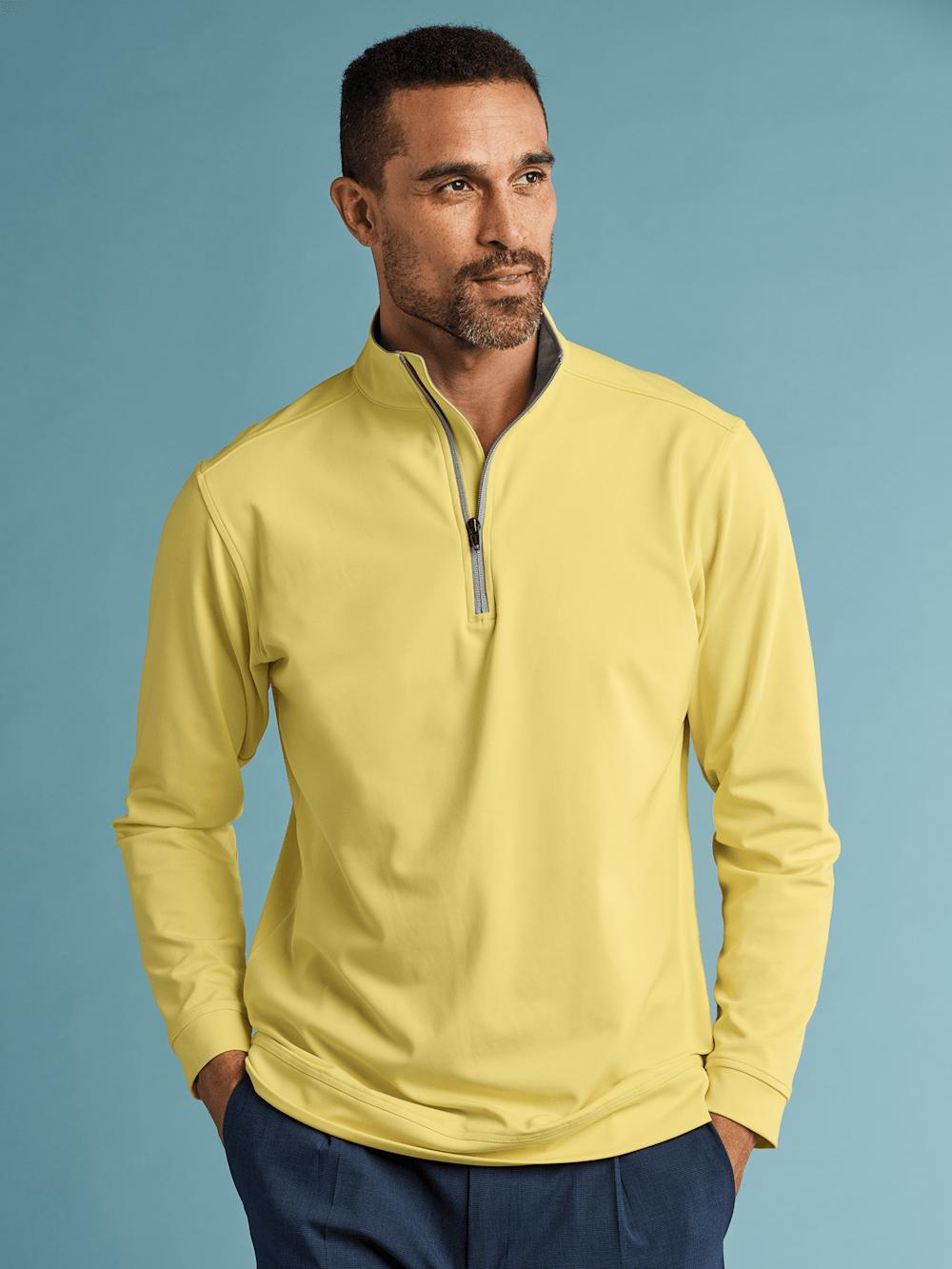 Features Zip Mock Neck, Long Sleeve Pullover Cut And Sewn Tubular Bottom And Cuffs Content & Care 82% Polyester, 18% Spandex Machine Wash Warm With Like Colors. Only Non-chlorine Bleach When Needed. Tumble Dry Low. Do Not Iron. Imported Style# KMV160L