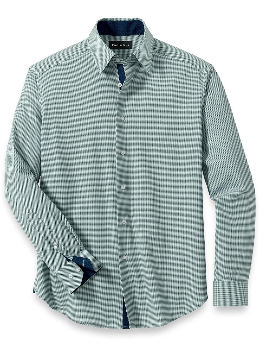 Features Point Collar, Two-button Adjustable Mitered Cuffs, Edge Topstitched Break Resistant Buttons Shorter Tail With Gusset Detail For Easy Wear Untucked Or Tucked In Contrast Fabric Inside Neckband, Inside Cuffs, Button Side Front Placket And Gussets Double Press Turnback Placket 4'' Wide Yoke, Side Back Pleats No Pocket Content & Care 90% Polyester / 10% Spandex Machine Wash Cold, Hang To Dry. Do Not Bleach, Do Not Tumble Dry. Imported Style# SPV110L