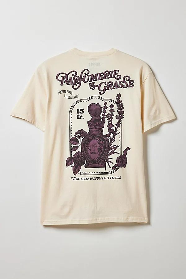 Tee with graphics printed at the front & back. Premium cotton jersey t-shirt in a standard fit with short sleeves and a ribbed crew neck. Features Perfumery graphic tee Crew neckline Front & back graphics Short sleeve Regular fit Content + Care 100% Cotton Machine wash Imported Size + Fit Measurements taken from size Medium Chest: 42 Length: 30 Perfumery Graphic Tee in Neutral, Mens at Urban Outfitters