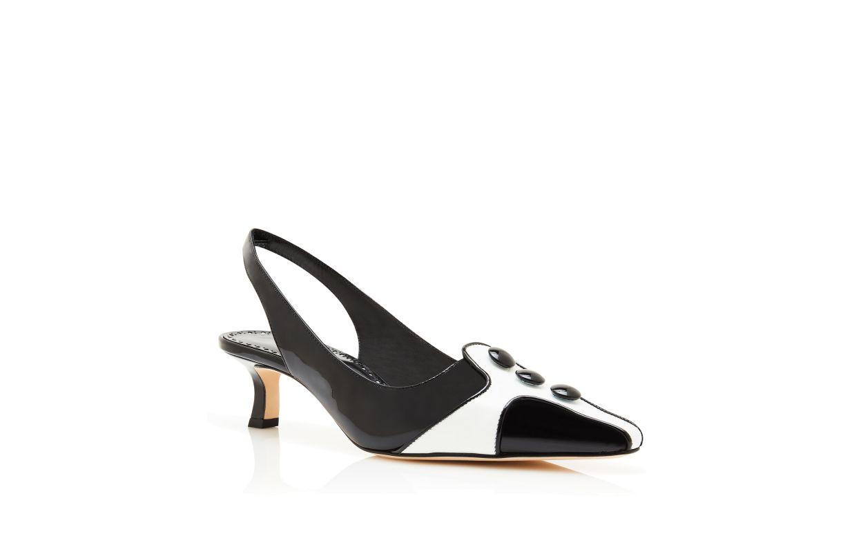 PERGAMUM Black and White Patent Leather Slingback Pumps