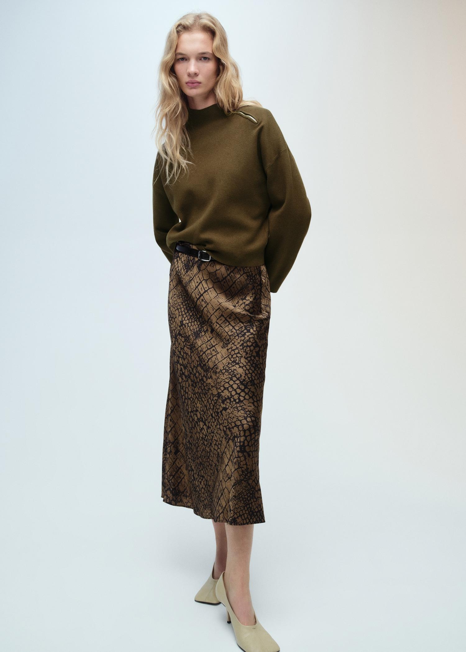 Medium knit fabric. Straight design. Perkins collar. High neck with zipper closure. Long sleeves. Cable knit finish. Back length 24.21 in