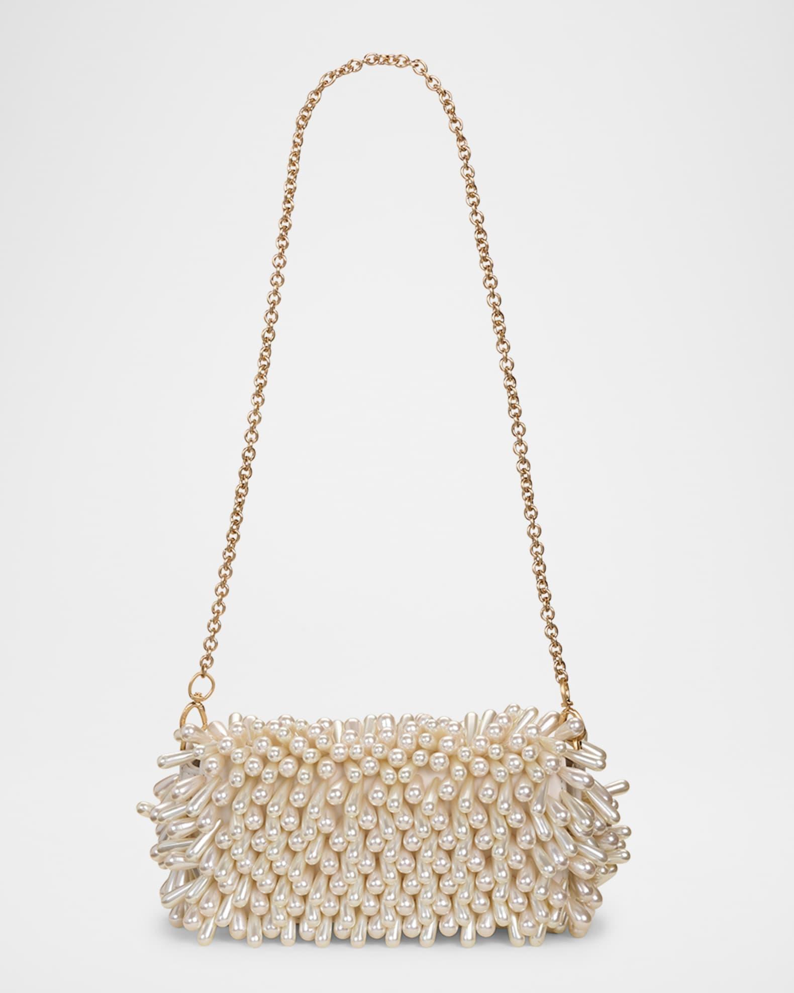 Cult Gaia "Perla" shoulder bag in allover pearly beads and leather Detachable chain shoulder strap Can be worn as a clutch or shoulder bag Fold-over flap top with magnetic closure Lining: Polyester Approx. 5.2"H x 4"W x 2.7"D ABS/brass Spot clean Imported
