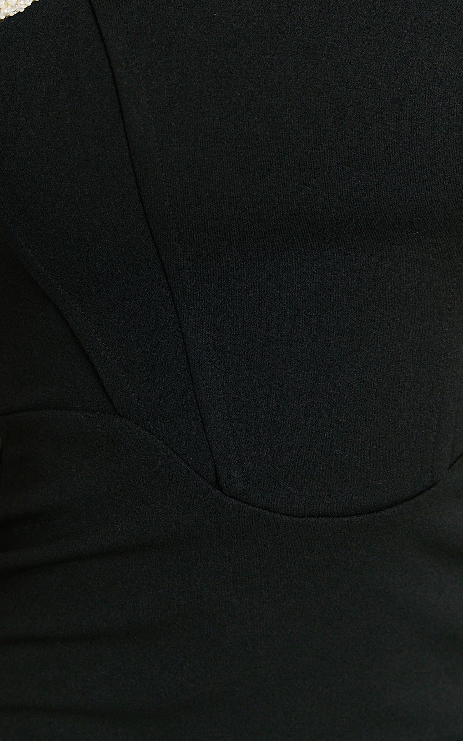 Discover the perfect look in our Perlita Midi Dress, where elegance meets timeless sophistication. This exquisite piece redefines the essence of the little black dress with its unique sleeveless pearl band detailing, offering a touch of glamour to any occasion. Crafted from the perfect blend of cotton and polyester, it promises both comfort and durability, ensuring you not only look stunning but feel remarkably comfortable throughout any event.Product Details:Formal DressCotton PolyesterStrapless NecklineMidi LengthMaterial and Care90% Polyester, 10% SpandexLow / No stretch
