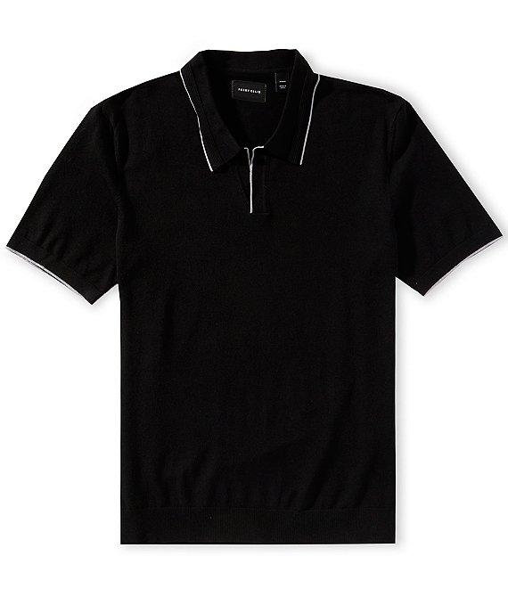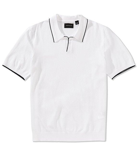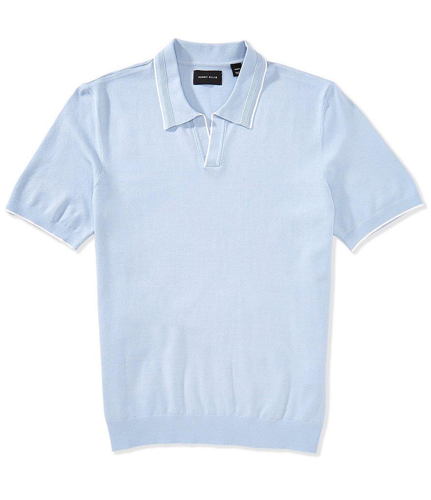 From Perry Ellis, this polo shirt features: Solid tone with tipping detail  Polo collar Short sleeves Viscose/polyester Machine wash/tumble dry Imported.