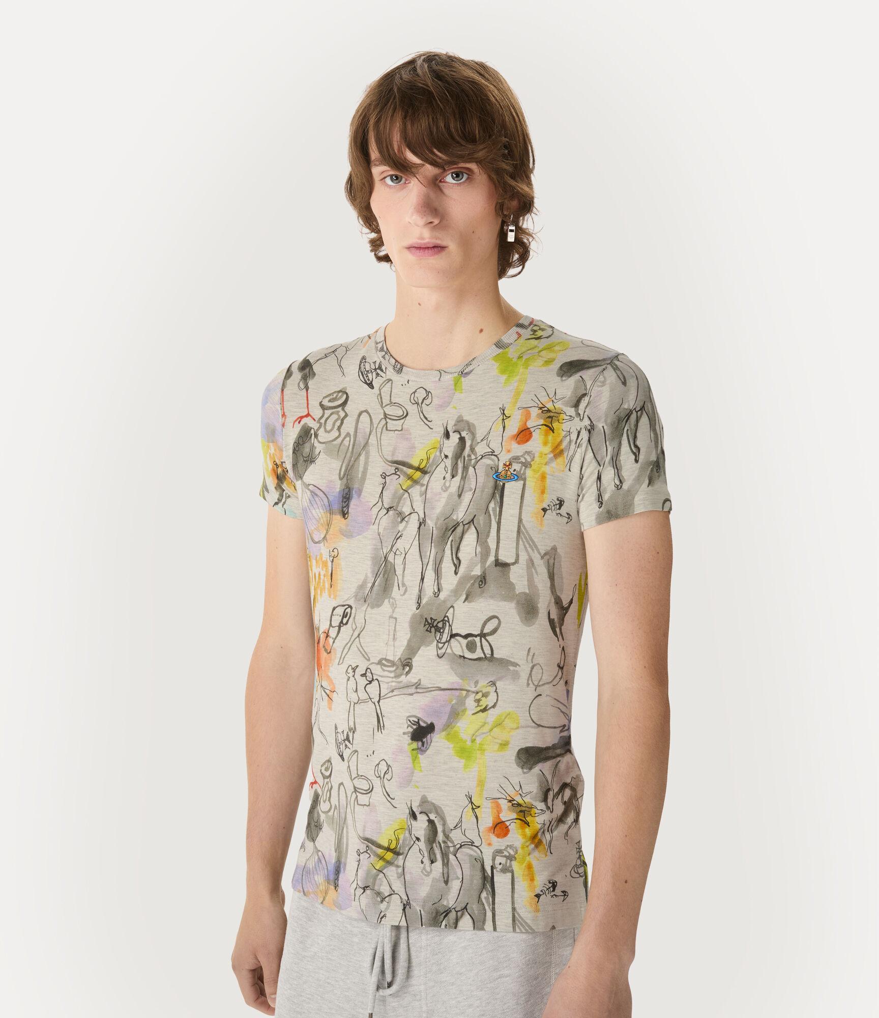 Our signature Peru T-shirt is crafted from a soft cotton-blend and printed with this season’s ‘Wonderland’ artwork, complete with a series of intricate hand-drawn sketch motifs layered with painterly watercolour splashes in vibrant tones. Cut to a slim silhouette with a classic crew neckline, the design is finished with a multicoloured orb embroidery at the chest.
