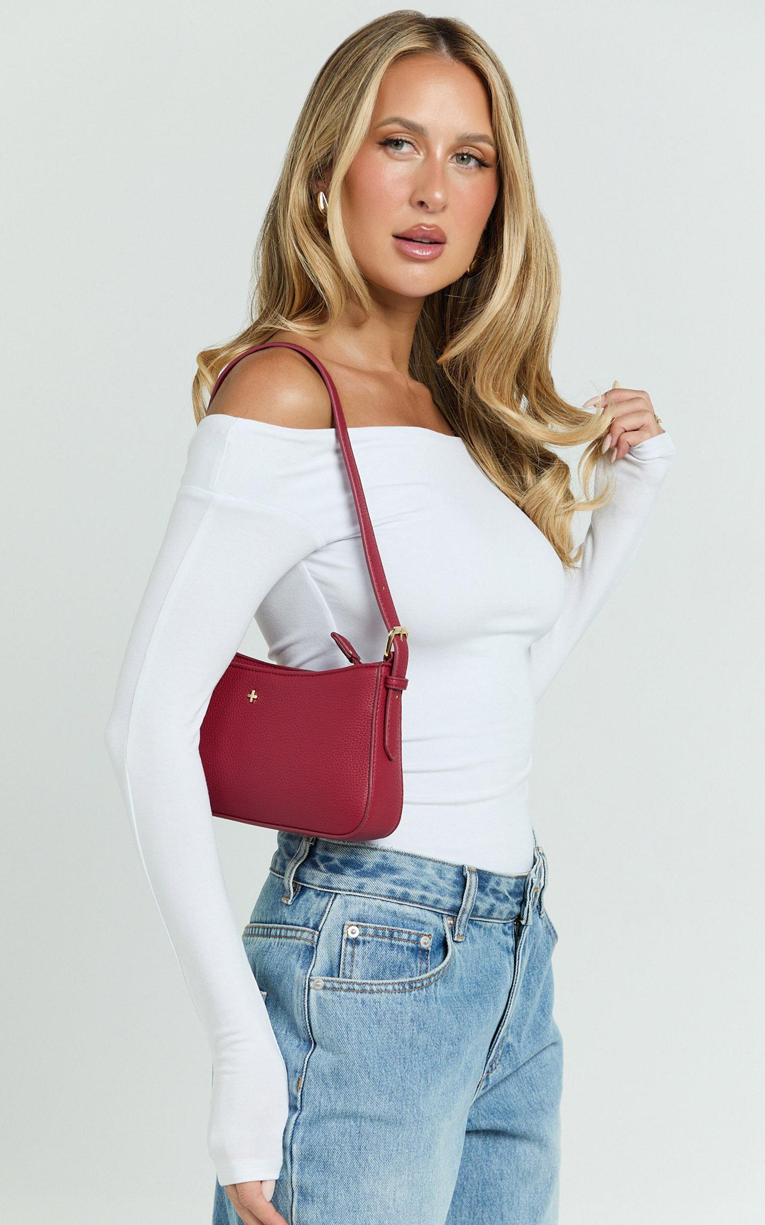 Make a statement in the Peta And Jain - Lilu Shoulder Bag in Cherry Pebble. This bold red bag is the ultimate pop of colour your casual wardrobe needs. Designed for the trendsetters, the synthetic pebbled finish delivers a luxe look without the fuss, while the sleek silhouette keeps things effortless and everyday-ready. Sling it over your shoulder and instantly elevate your brunch, date night, or festival outfits. Roomy enough for all your essentials but compact for easy styling, this shoulder bag is your go-to accessory for standing out in the crowd. Step up your fashion game and add Cherry Pebble energy to every OOTD.Product Details:Shoulder bag style Synthetic material Perfect for casual