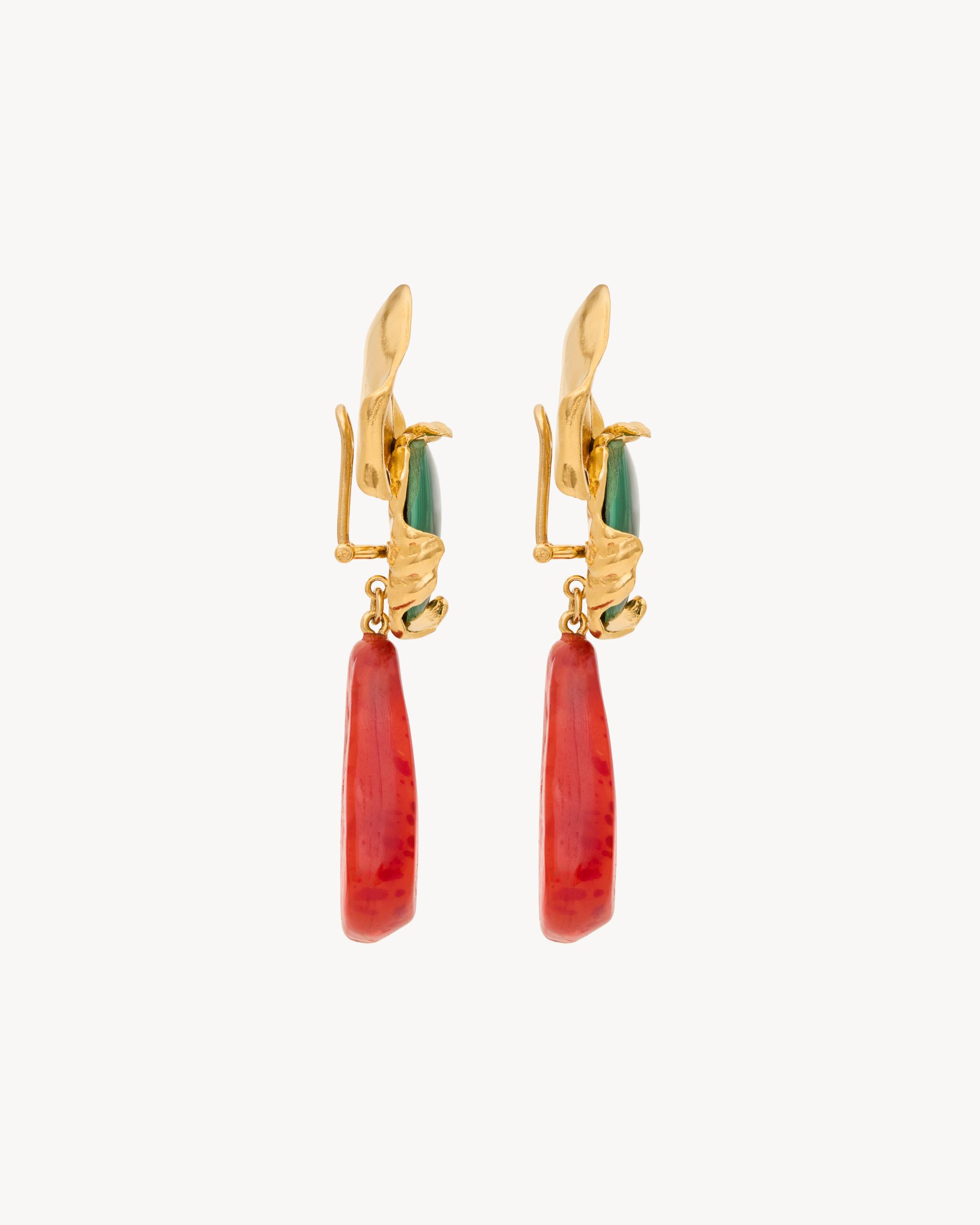 petal pendant earrings in malachite, resin, and metal