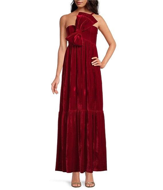 From Petal & Pup, this dress features: Velvet fabrication Square neckline Sleeveless One shoulder adjustable shoulder strap Nondetachable bow detail Inner bust rubber grip Functional side pockets Smocked back panel Invisible back zip with hook and clasp Unlined Approx. 49" length Hand wash Imported.