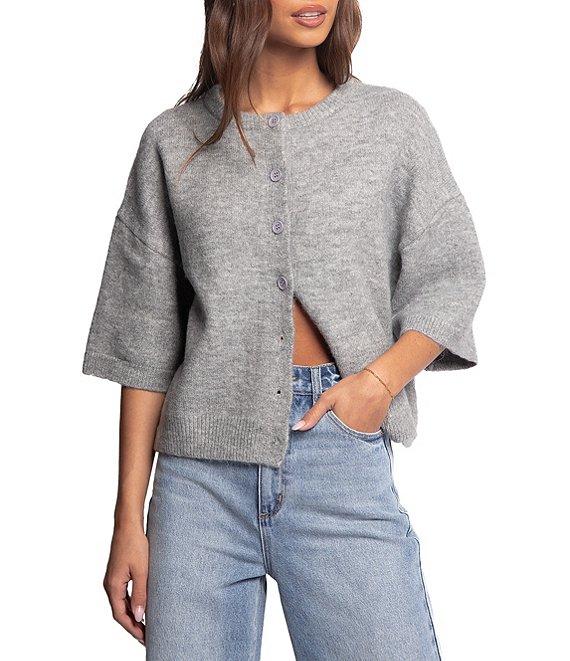 Petal & Pup Lilith Round Neckline Elbow Sleeve Button Front Cardigan
