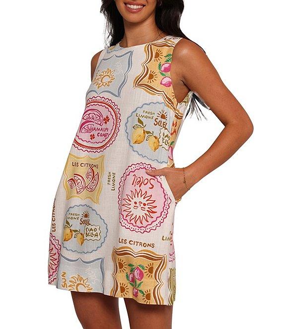 Petal & Pup Zoe Printed Linen Blend Round Neck Mini Dress