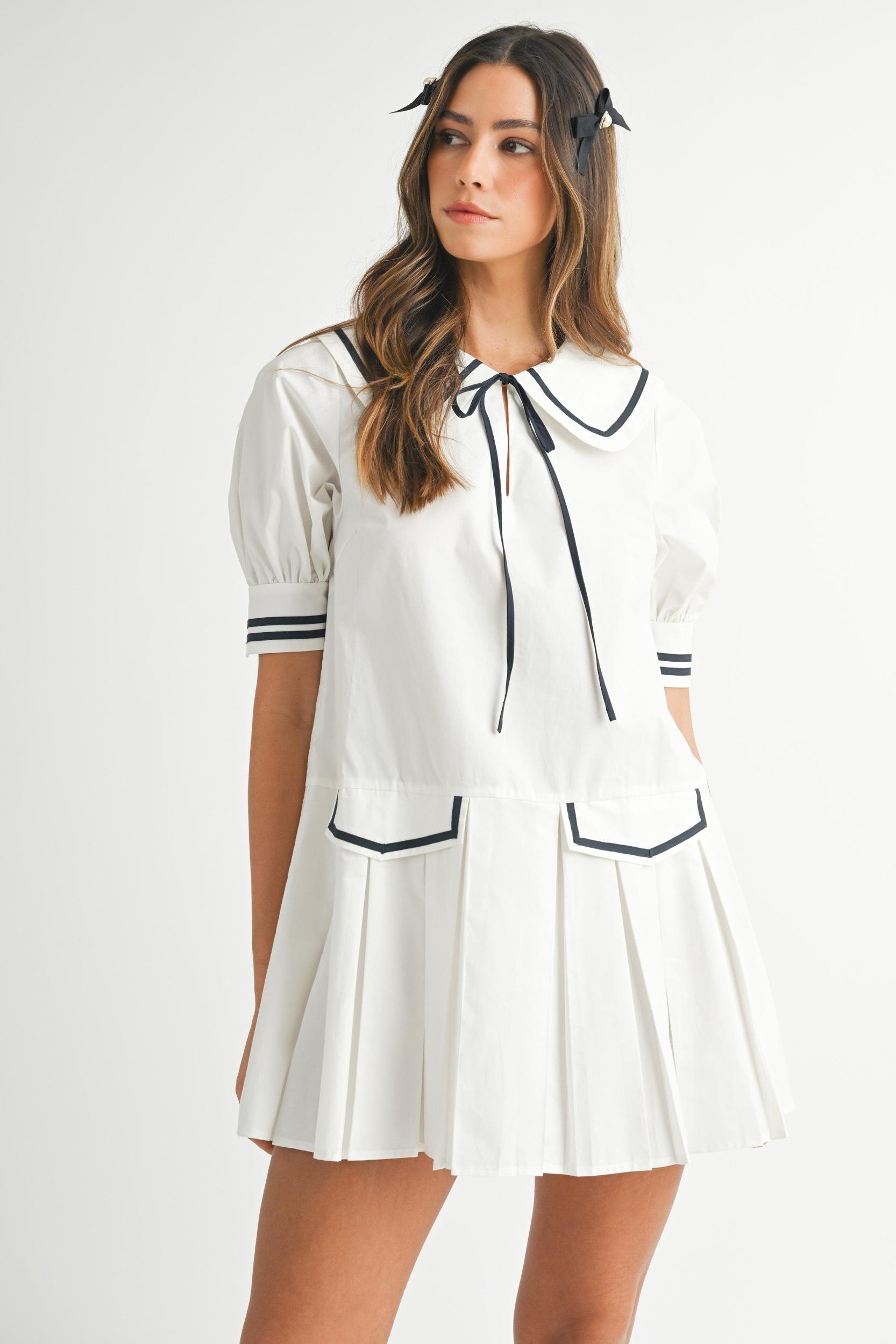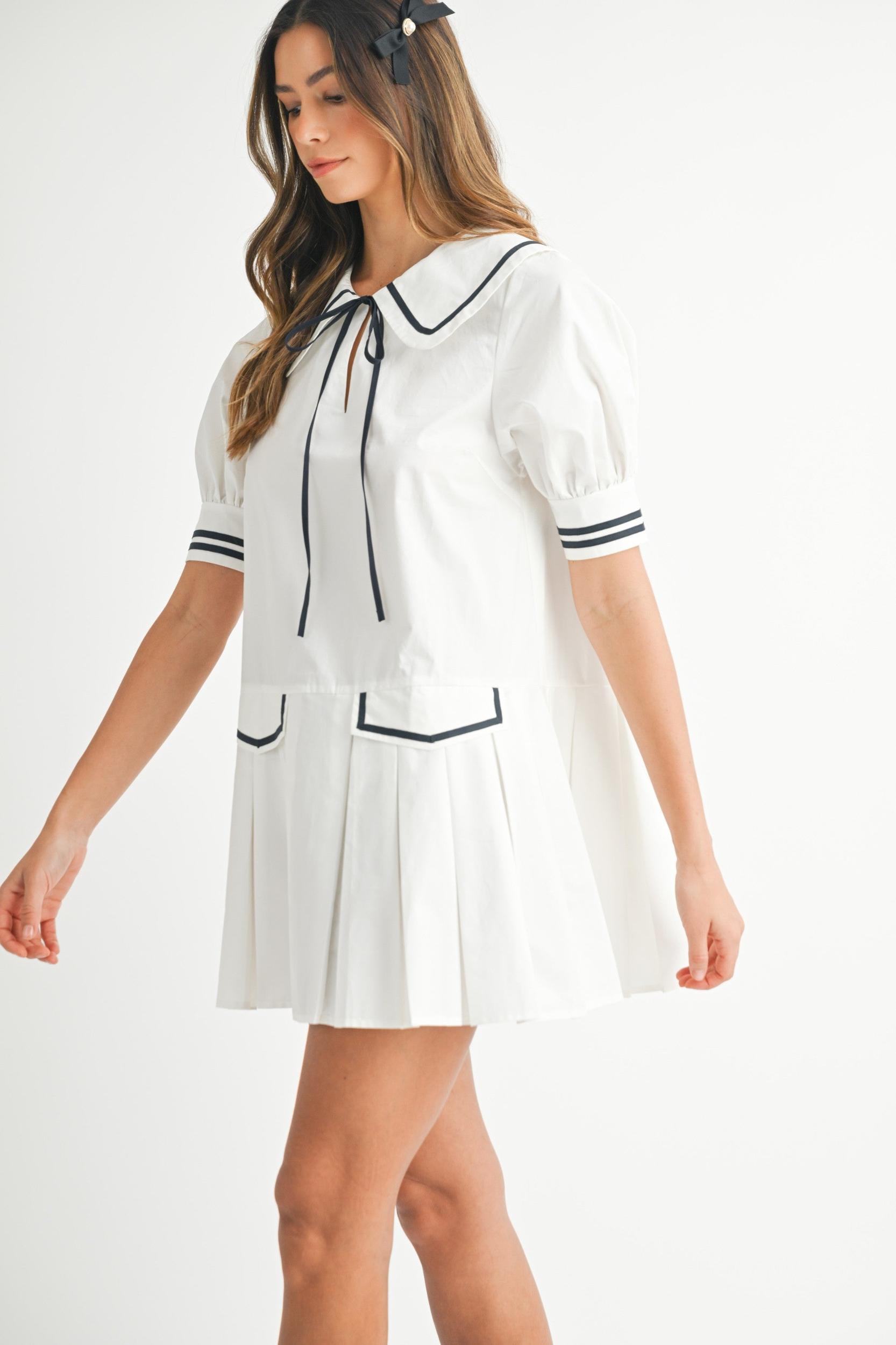 The Peter Pan Collar Pleated Mini Dress is a wardrobe staple for those who love a feminine, chic style. Pair with your favorite flats or heels and accessories to create a polished, on-trend look for any event. This dress is your go-to for effortlessly elevated style.