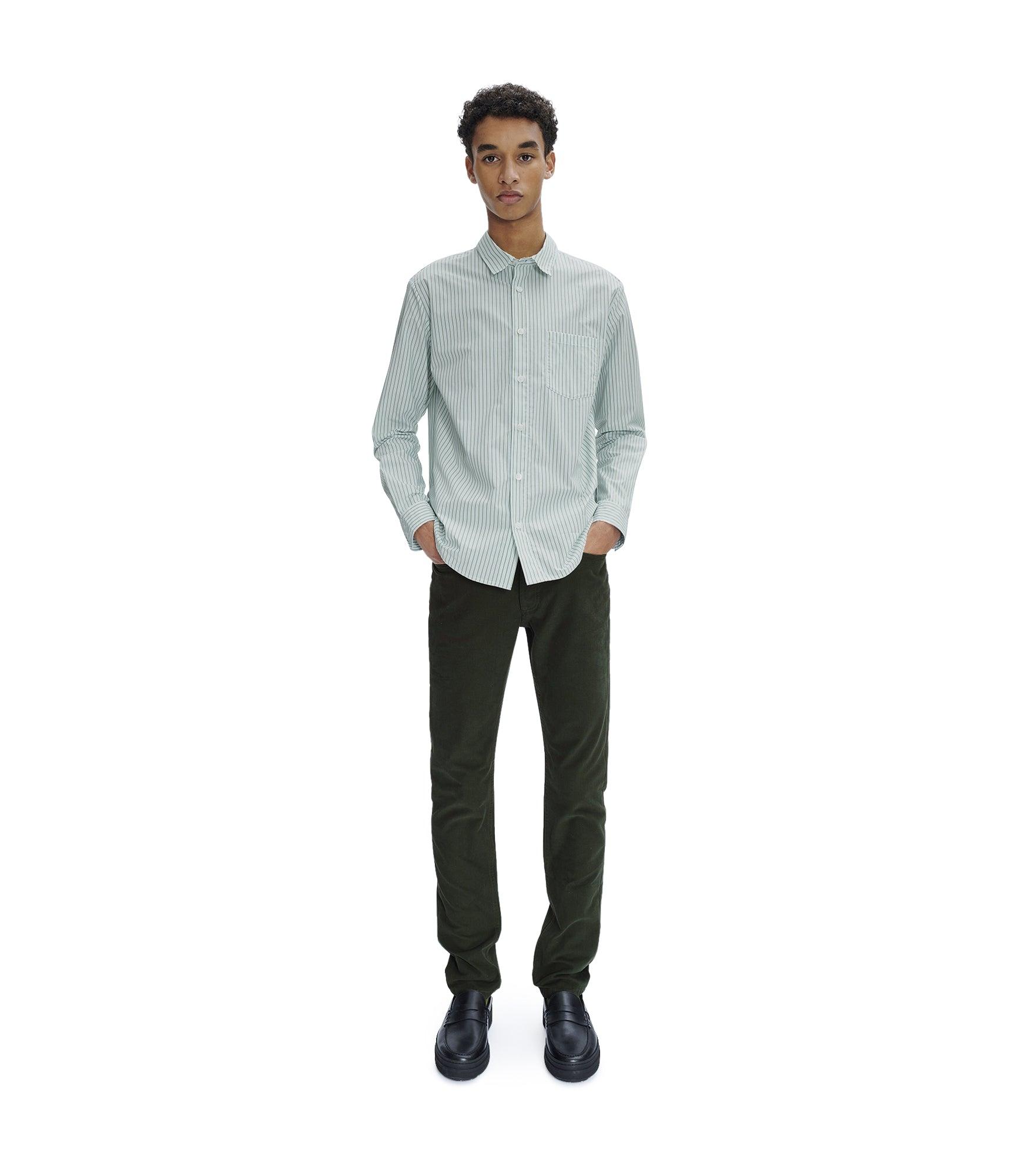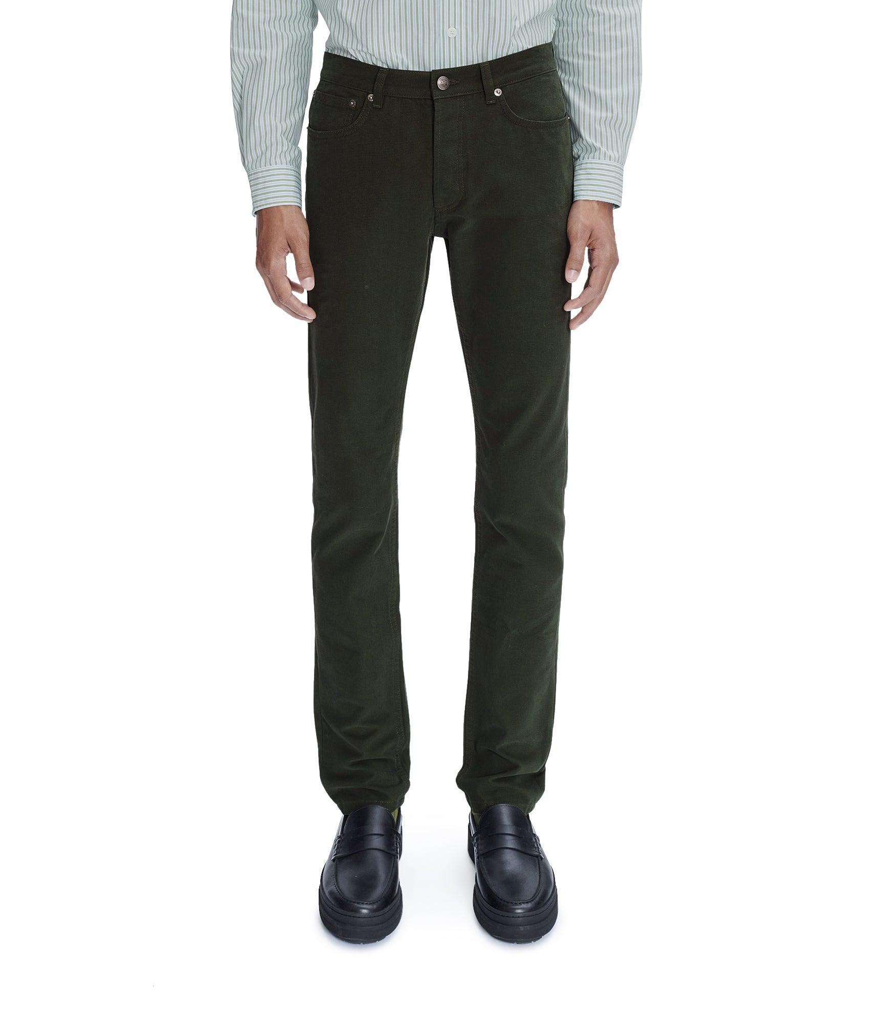 A.P.C. pants. - Unisex model. - Mid-rise. - Fitted leg. - Button fly. - Button engraved with 'guitar and dagger' insignia. - Tone-on-tone topstitching.