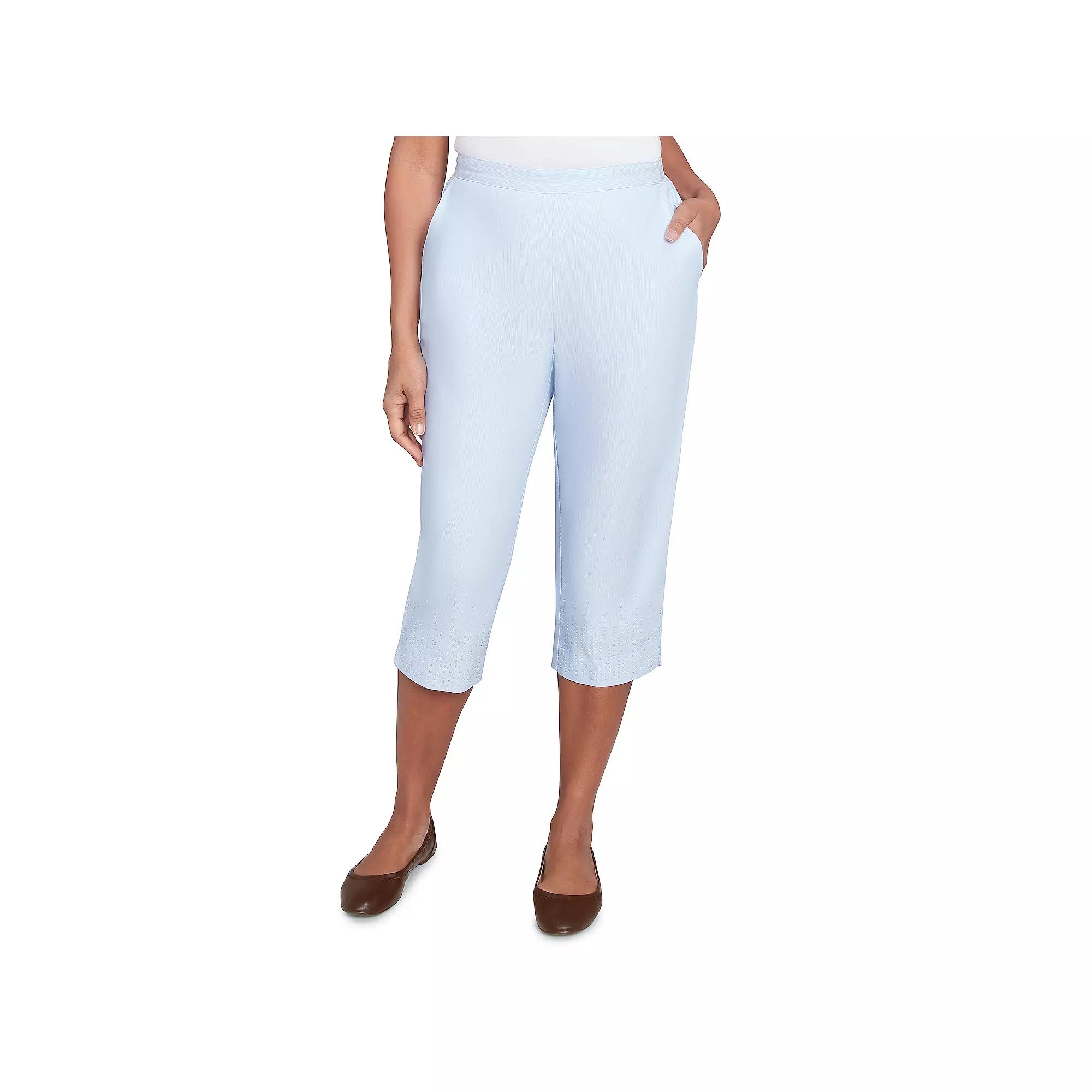 Elevate your casual look with these heat-set embroidered capri pants, designed in a flattering allure fit. The sleek flat front and convenient side seam pockets ensure both style and functionality.Click on this WOMENS GUIDE to find the perfect fit and more!Elevate your casual look with these heat-set embroidered capri pants, designed in a flattering allure fit. The sleek flat front and convenient side seam pockets ensure both style and functionality.Click on this WOMENS GUIDE to find the perfect fit and more!FEATURES No closure - pull-on styling 2 pockets Heat set embroidery at the hem for a touch of eleganceFIT & SIZING Midrise sits on the high hip 20 3/4-in. inseamFABRIC & CARE Cotton, polyester, spandex Machine wash and tumble dry Imported Size: 18. Color: Skyblue. Gender: female. Age Group: adult.