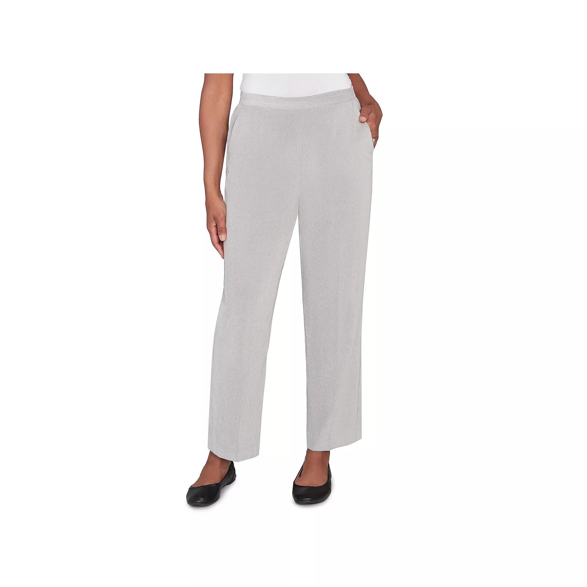 Elevate your cooler day wardrobe with these stylish pull-on pants that blend comfort with a sleek look. Designed with functional side seam pockets and a smooth finish, these Alfred Dunner pants are perfect for everything from coffee dates to cozy nights in. Click on this WOMEN'S GUIDE to find the perfect fit and more! - https://www.kohls.com/feature/womens-fit-guide.jsp. FEATURES: Polished refresh of classic corduroy, Flattering fit with sleek silhouette, Functional side seam pockets, Rich, touchable finish for cooler days. FIT & SIZE: Midrise sits on the high hip, 29 1/4-in. inseam, Elastic waistband. MATERIAL & CARE: Body: polyester, nylon, spandex, Machine wash and tumble dry. DETAILS: No closure - pull-on styling, Side pockets, Imported. Size: 10. Color: Sage. Gender: female. Age Group: adult. Material: POLY BLEND.