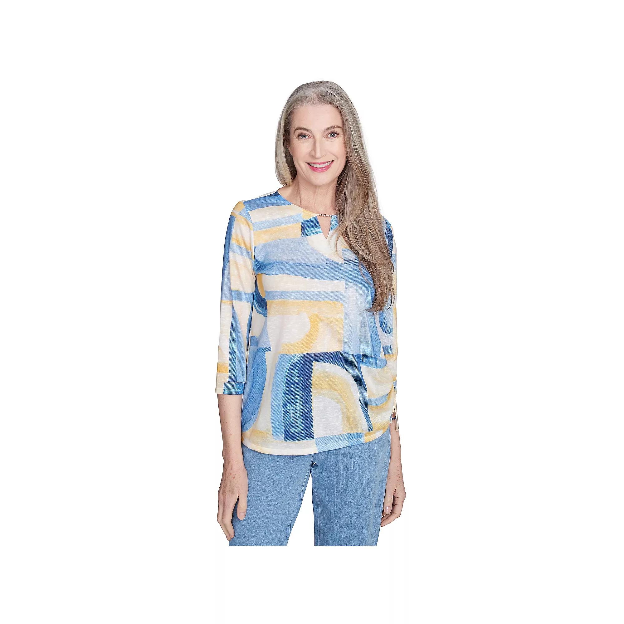 Step into a colorful look with this Women's Alfred Dunner Watercolor Patchwork Geometric Top.Click on this WOMEN'S GUIDE to find the perfect fit and more!Step into a colorful look with this Women's Alfred Dunner Watercolor Patchwork Geometric Top. Click on this WOMEN'S GUIDE to find the perfect fit and more!FEATURES Beaded neckline 3/4-length sleeves SplitneckFIT & SIZING 24 1/2-in. length from shoulder to hemFABRIC & CARE Polyester Machine wash and tumble dry Imported Size: Medium. Color: Blue Team. Gender: female. Age Group: adult.