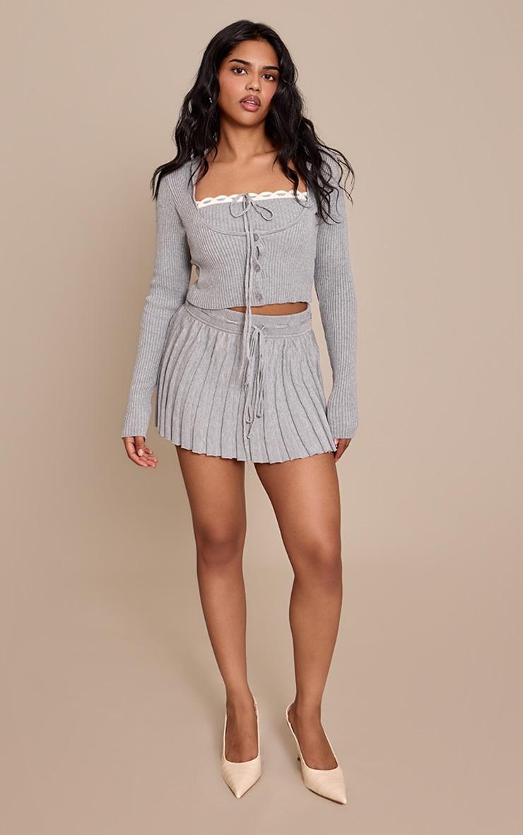 The petite ash grey tie detail double layer knit top perfects your off-duty aesthetic. In ash grey ribbed knit, it features a square neckline, front tie detail, and button fastenings. Ideal for relaxed day plans or city strolls. Team with matching bottoms, boots, and a black bag to complete the look.Length approx 45.5cm/18inch (Based on sample size US 2)Model wears size UK 6/ EU 34/ AUS 6/ US 2Model Height - 5ft 2inchp]:!mb-4inch>Brand: PrettyLittleThingCategory: KnitwearProduct type: TopColor: Ash GreyMaterial: KnitOccasion: Day