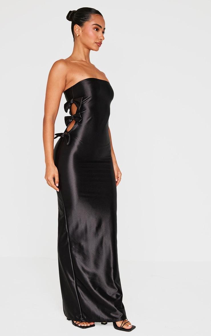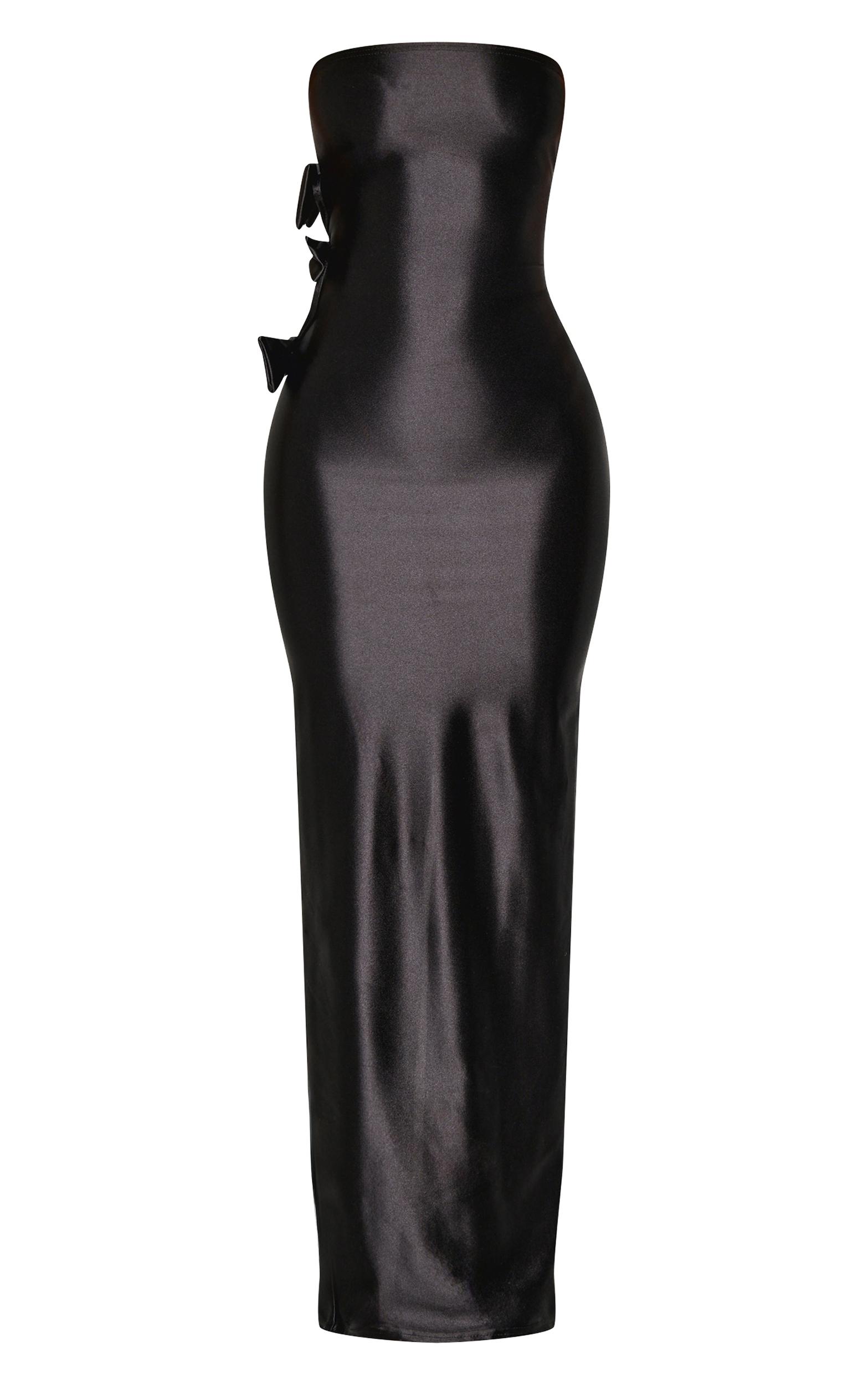 Make styling easy with this petite black bow detail bandeau maxi dress. Brought to you in a black material with a bow detail and a bandeau fit, you are sure to be tapping into your feminine side with this maxi dress. Team with a pair of heels and gold accessories to finish off the look everyone is talking about. Length approx 147cm/58inch (Based on a sample size XS) Model wears size XSModel Height - 5ft 2inchp]:!mb-4inch>Brand: PrettyLittleThingCategory: DressesProduct type: Bodycon DressColor: BlackMaterial: Slinky JerseyDesign: PlainNeckline: BandeauSleeves: BandeauOccasion: Evening