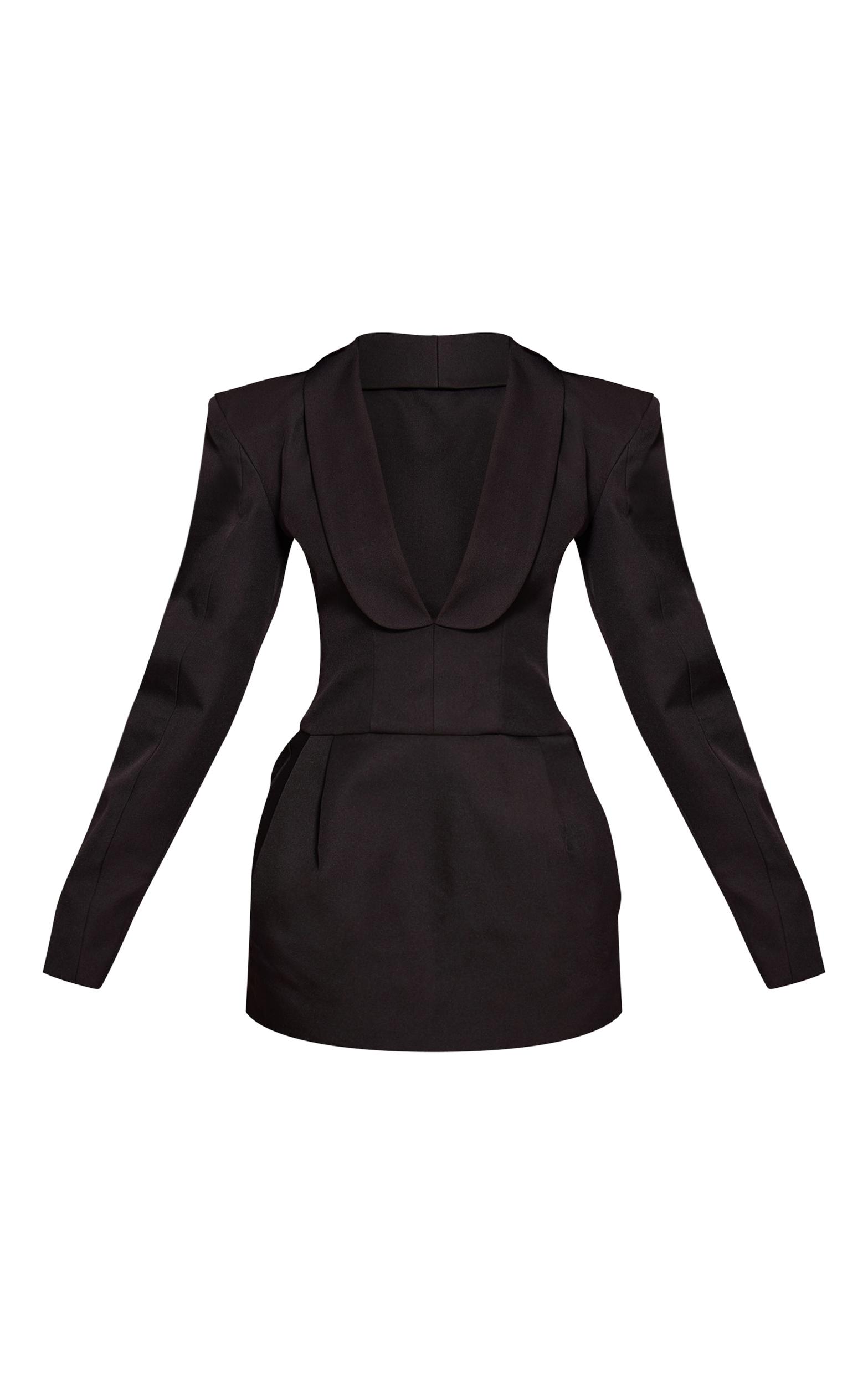 Embrace the power of refined tailoring after dark. The petite black cinched v-neck blazer dress delivers a commanding silhouette, expertly cut with a bold V-neckline that plunges to meet a sharply cinched waist. Its structured shoulders define the form, while subtle draping at the skirt creates a confident mini-length profile. Elevate this statement piece with sleek black heels for an assured stride, completing your look with a stack of gold bracelets and a minimalist clutch for an inherently polished finish.Length approx 76cm/30inch (Based on sample size US 2)Model wears size UK 6/ EU 34/ AUS 6/ US 2Model Height - 5ft 2inchp]:!mb-4inch>Brand: PrettyLittleThingCategory: DressesProduct type: Shift DressColor: BlackMaterial: Tailored WovenOccasion: Evening