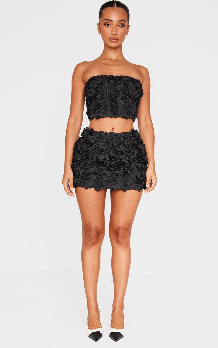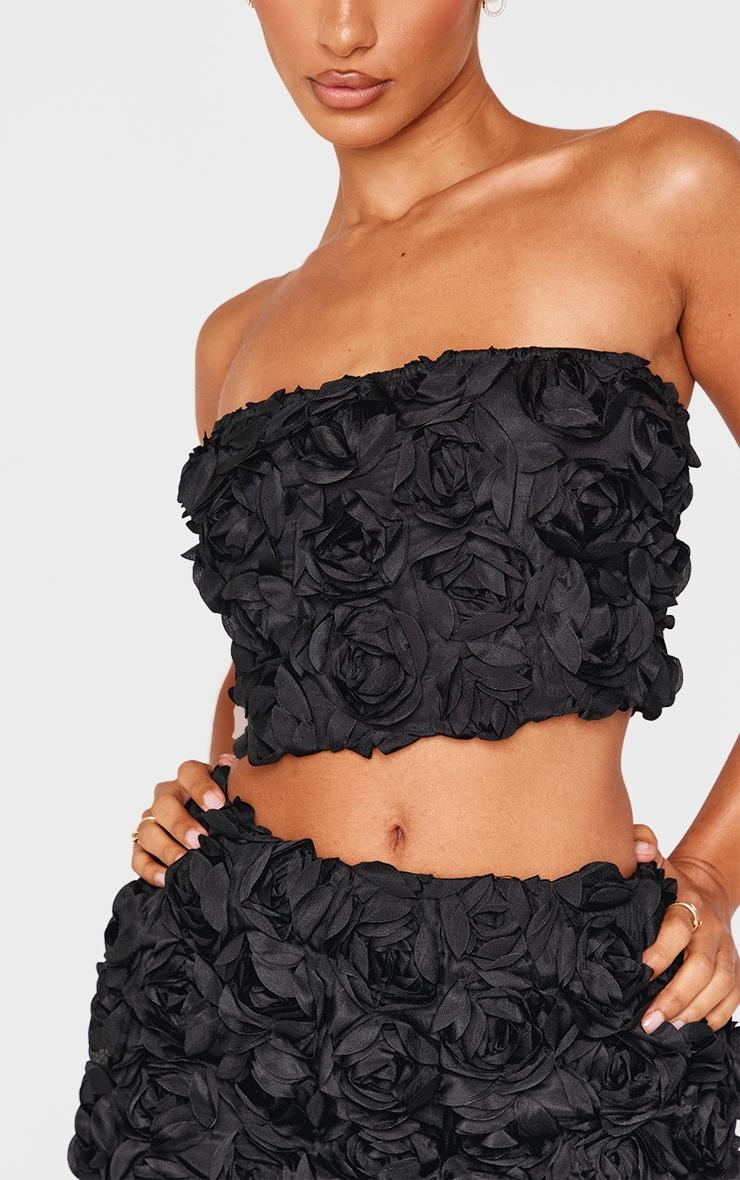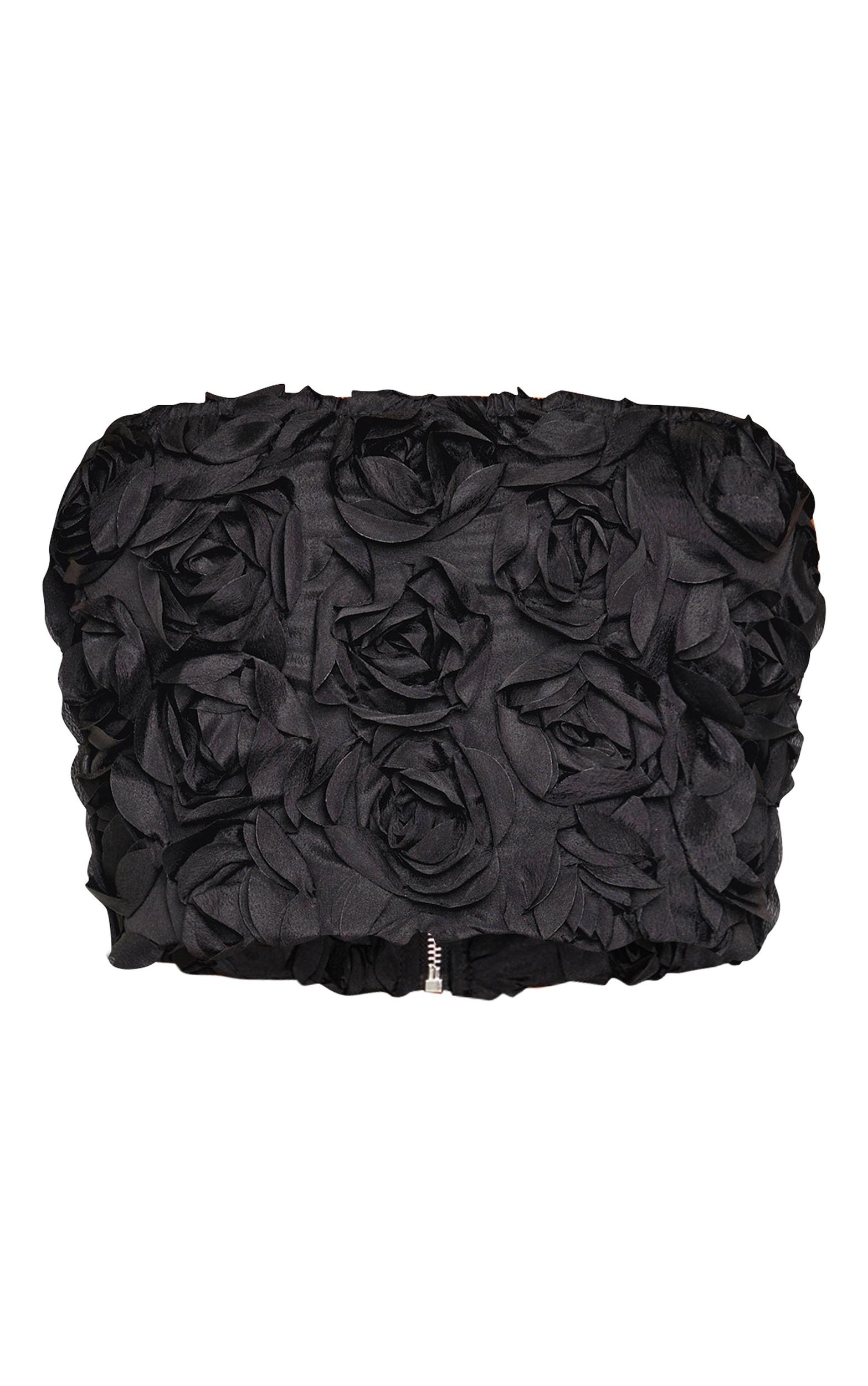 This petite black flower detail bandeau top is a must have for your weekend plans. Brought to you in a versatile black hue, with a flower detail and bandeau cut, we know you'll be looking and feeling your most confident self. Style with the matching mini skirt and heels for a completed look we're loving. Length approx 23cm/9inch (Based on a sample size UK 6) Model wears size UK 6/ EU 34/ AUS 6/ US 2Model Height - 5ft 2inchp]:!mb-0inch>Category: Co-ordsProduct type: Bandeau TopColor: BlackMaterial: Woven CrepeDesign: PlainNeckline: BandeauSleeves: BandeauOccasion: Evening