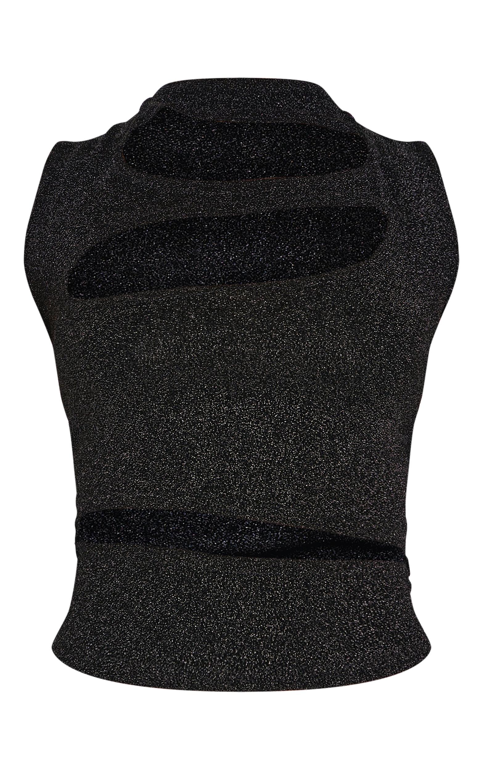 Introducing the petite black glitter cut out detail crop top. Brought to you in a black glitter material with a cut out detail and a cropped length, you won't be able to resist. Team this petite crop top with the matching maxi skirt and your fave accessories to take your outfit from 0-100 instantly. Length approx 46cm/18inch (Based on a sample size XS) Model wears size XSModel Height - 5ft 2inchp]:!mb-4inch>Brand: PrettyLittleThingCategory: Co-ordsProduct type: Vest TopColor: BlackMaterial: Slinky JerseyDesign: PlainNeckline: CrewSleeves: SleevelessOccasion: Evening