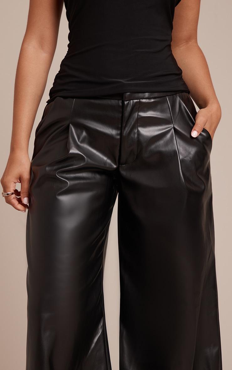 The petite black pleated faux leather pants blend sharp tailoring with modern edge. Cut from soft faux leather, they feature subtle pleats at the waist that add structure while flattering the petite silhouette. The straight-leg cut elongates the frame while offering versatile styling potential. Pair with a fitted knit and heeled boots for chic evening wear, or style with a crisp white shirt and loafers for elevated day dressingLength approx 66cm/26inch (Based on sample size US 4)Model wears size UK 8/ EU 36/ AUS 8/ US 4p]:!mb-4inch>Brand: PrettyLittleThingCategory: BottomsProduct type: Wide LegColor: BlackMaterial: Faux LeatherOccasion: Day