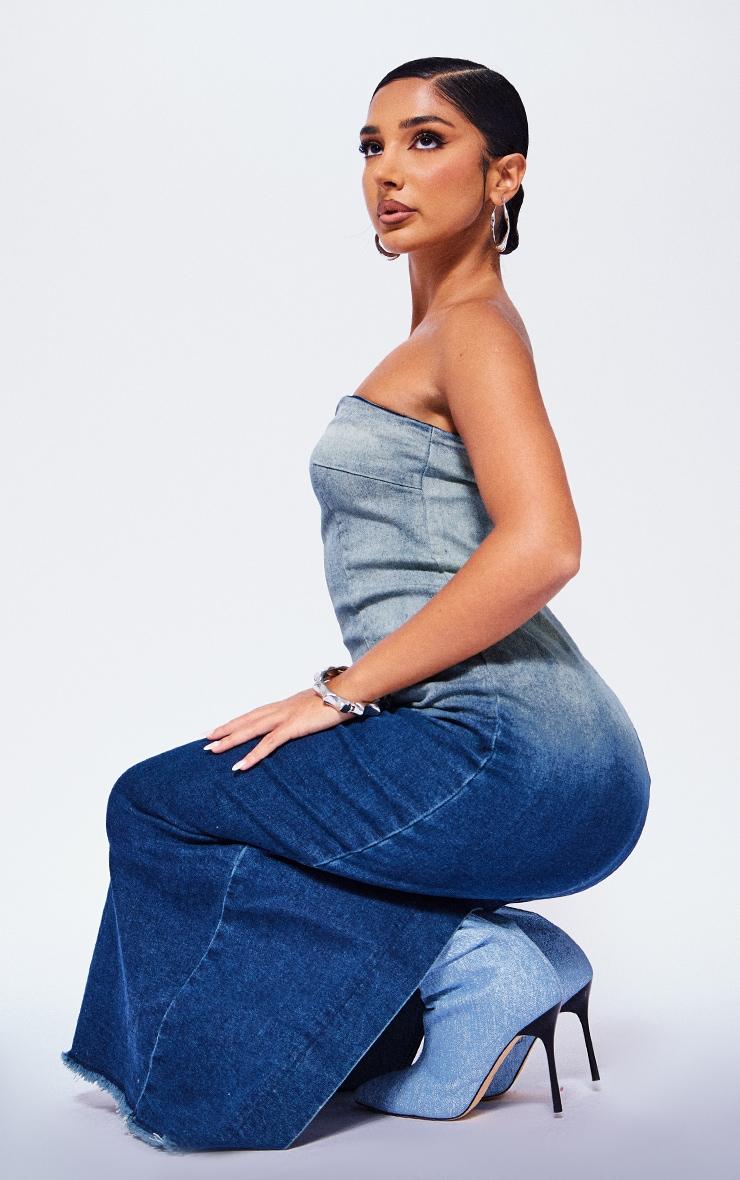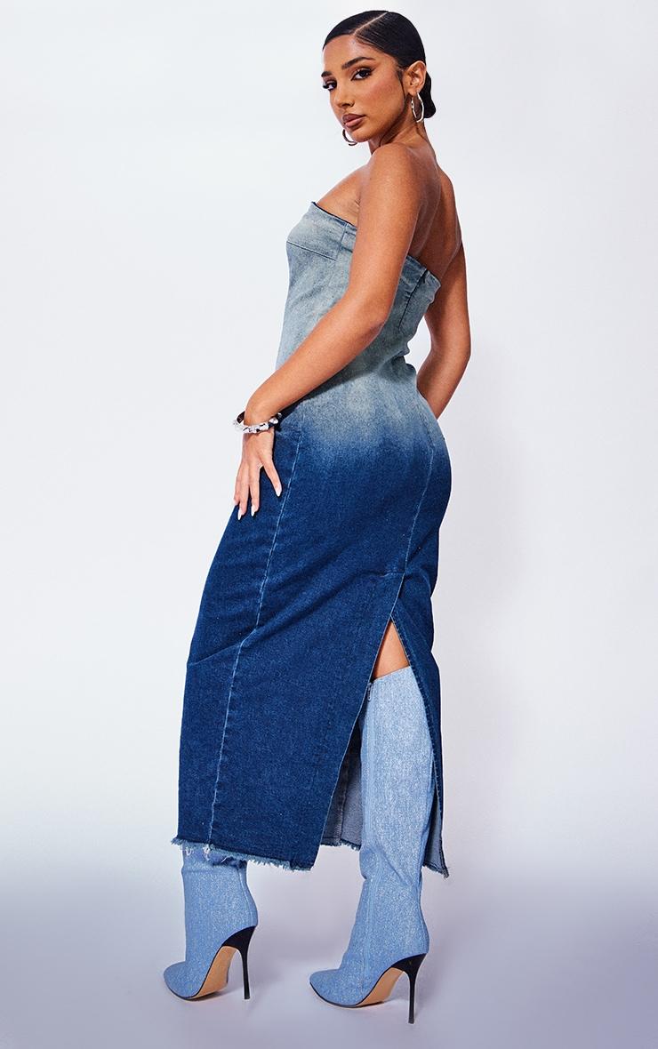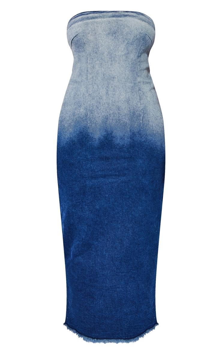 Stand out from the rest with this petite blue washed ombre denim bandeau midaxi dress. Brought to you in a blue washed denim material with an ombre design, what more could you want ? This midaxi dress is all you need for those upcoming events in your diary. Team with a pair of heeled boots and your go-to accessories to finish off the look. Length approx 107cm/42inch (Based on a sample size UK 6) Model wears size UK 6/ EU 34/ AUS 6/ US 2Model Height - 5ft 4inchp]:!mb-0inch>Category: DenimProduct type: Denim Evening DressColor: BlueMaterial: Stretch DenimDesign: PlainNeckline: BandeauSleeves: SleevelessOccasion: Day