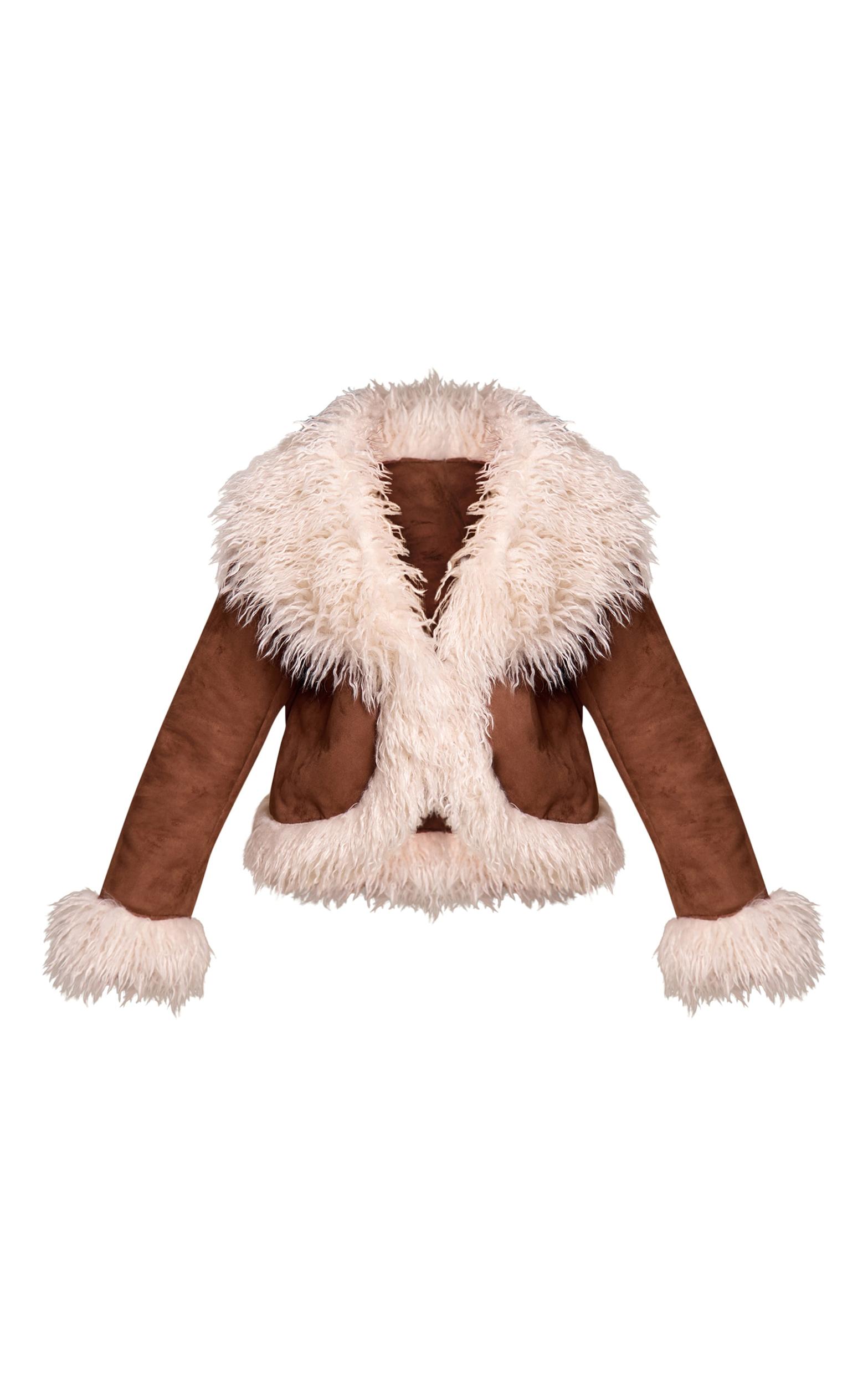 Embrace a distinct era with the petite brown faux suede fur trim afghan coat, a piece designed to instantly elevate your outerwear game. This cropped, open-front design features bold, shaggy faux fur detailing across the generous collar, lapels, cuffs, and hem, bringing an authentic edge to your look. Layer it over a simple fitted top and high-waisted wide-leg pants, grounding your ensemble with a pair of sleek cowboy boots. Add a flash of gold earrings to complete this confident, day-ready statement.Length approx 45.5cm/18inch (Based on sample size XS)Model wears size XSModel Height - 5ft 2inchp]:!mb-4inch>Category: OuterwearProduct type: Faux FurColor: BrownMaterial: Faux SuedeSleeves: LongOccasion: Day