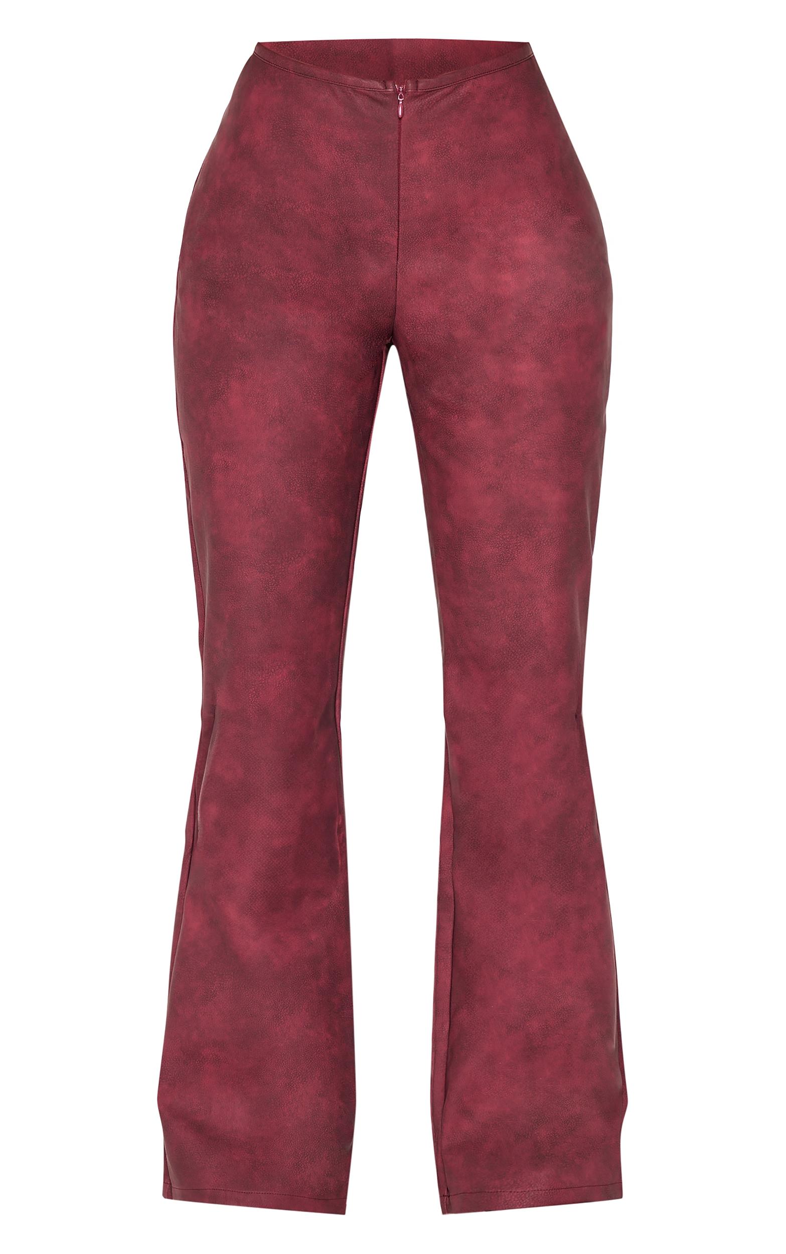 Stay sleek in these petite burgundy faux leather zip front flared pants. Crafted from burgundy faux leather, these pants have zip front detailing and a timeless flared fit. Add the matching top and your go-to pointed toe court heels for a look we're loving right now. Length approx 66cm/26inch (Based on sample size US 2)Model wears size UK 6/ EU 34/ AUS 6/ US 2Model Height - 5ft 2inchp]:!mb-4inch>Brand: PrettyLittleThingCategory: Co-ordsProduct type: FlaredColor: BurgundyMaterial: Faux FeatherDesign: PlainOccasion: Evening