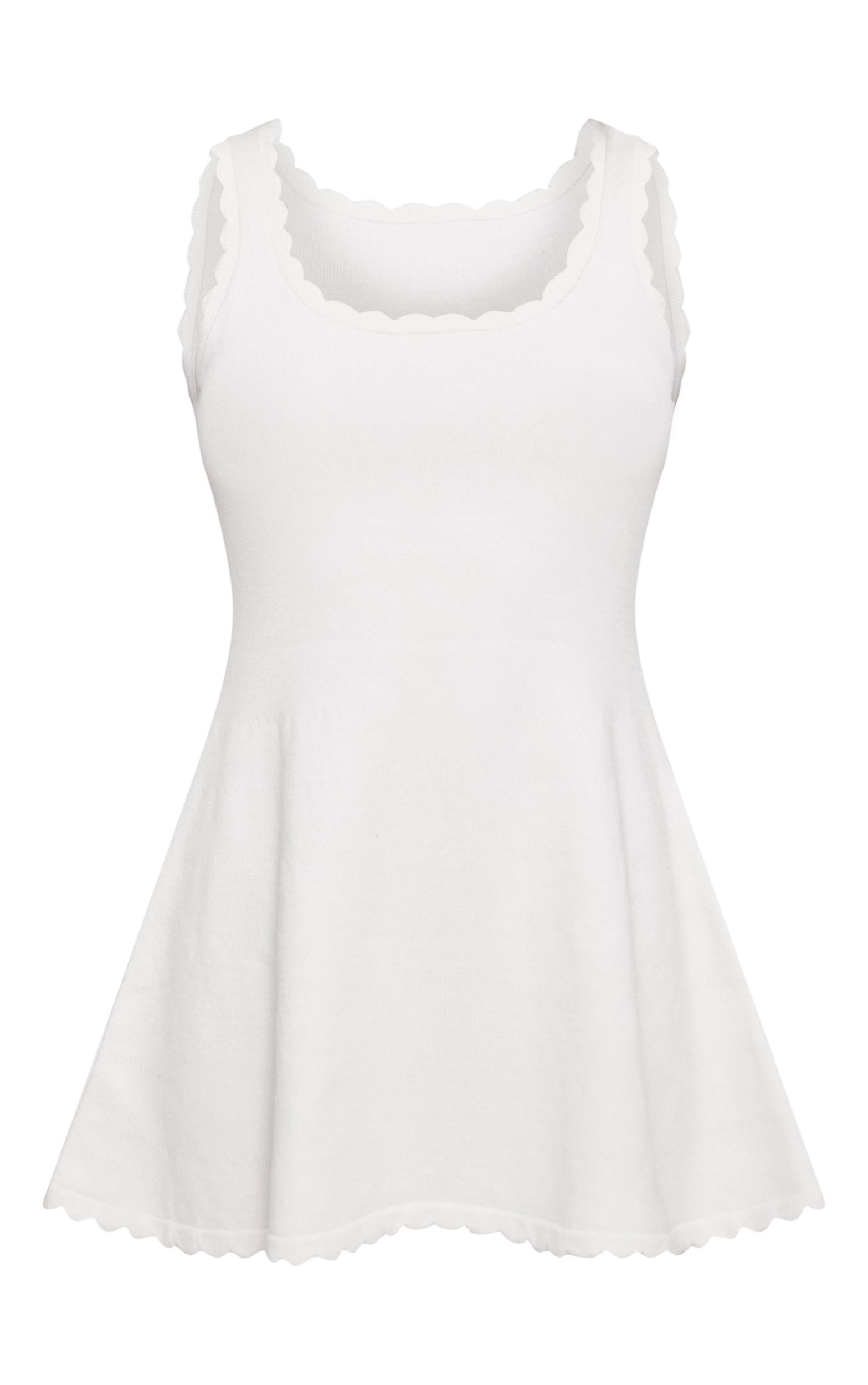 Detailing your daywear with undeniable charm, this piece redefines easy styling. Meet the petite buttercream knitted scallop edge shift mini dress, your new go-to. Its subtle butter cream hue complements the clean, fitted bodice that flows into a softly flared skirt, creating an effortlessly wearable shift silhouette. The distinguishing scallop detail traces the sleeveless neckline and mini hem, adding an artful touch to its minimal design. Style this versatile day dress with crisp white sneakers for a relaxed, confident vibe, or layer under an oversized denim jacket and finish with a statement crossbody bag for an elevated weekend look. It's the piece that ensures your style remains refined, whatever the agenda.Length approx 76cm/30inch (Based on sample size XS)Model wears size XSModel Height - 5ft 4inchp]:!mb-4inch>Brand: PrettyLittleThingCategory: KnitwearProduct type: Bodycon DressColor: Butter CreamMaterial: KnitOccasion: Day