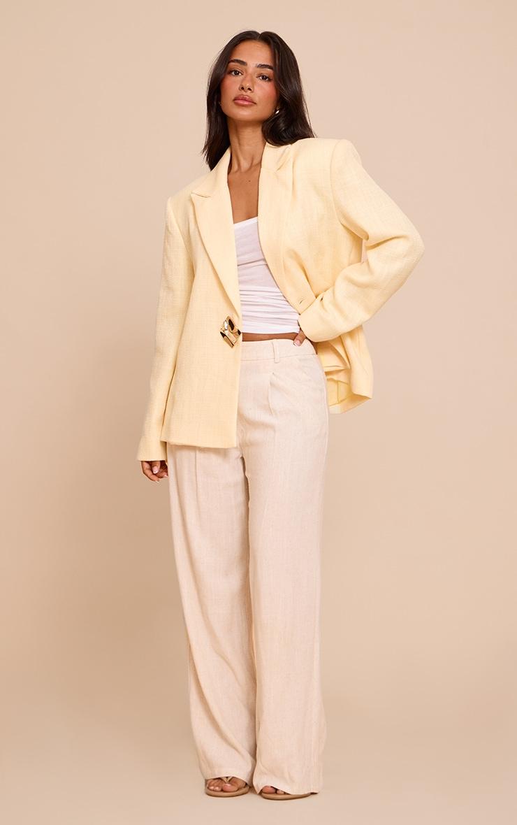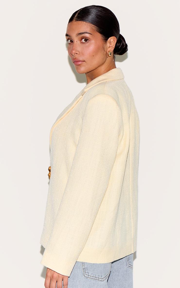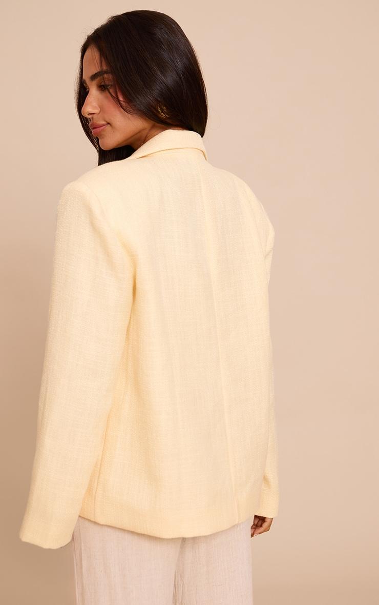 Meet the latest must-have's your petite buttercream trim detail textured blazer.Created with a blend of soft textures, this buttercream trim detail textured blazer comes in a luxe petite finish.Team with minimal jewelry and classic ankle boots.Length approx 45.5cm/18inch (Based on sample size US 2)Model wears size UK 6/ EU 34/ AUS 6/ US 2Model Height - 5ft 5inchp]:!mb-4inch>Brand: PrettyLittleThingCategory: OuterwearProduct type: Oversized BlazerColor: Butter CreamMaterial: Tailored WovenDesign: PlainNeckline: ShirtSleeves: LongOccasion: Evening