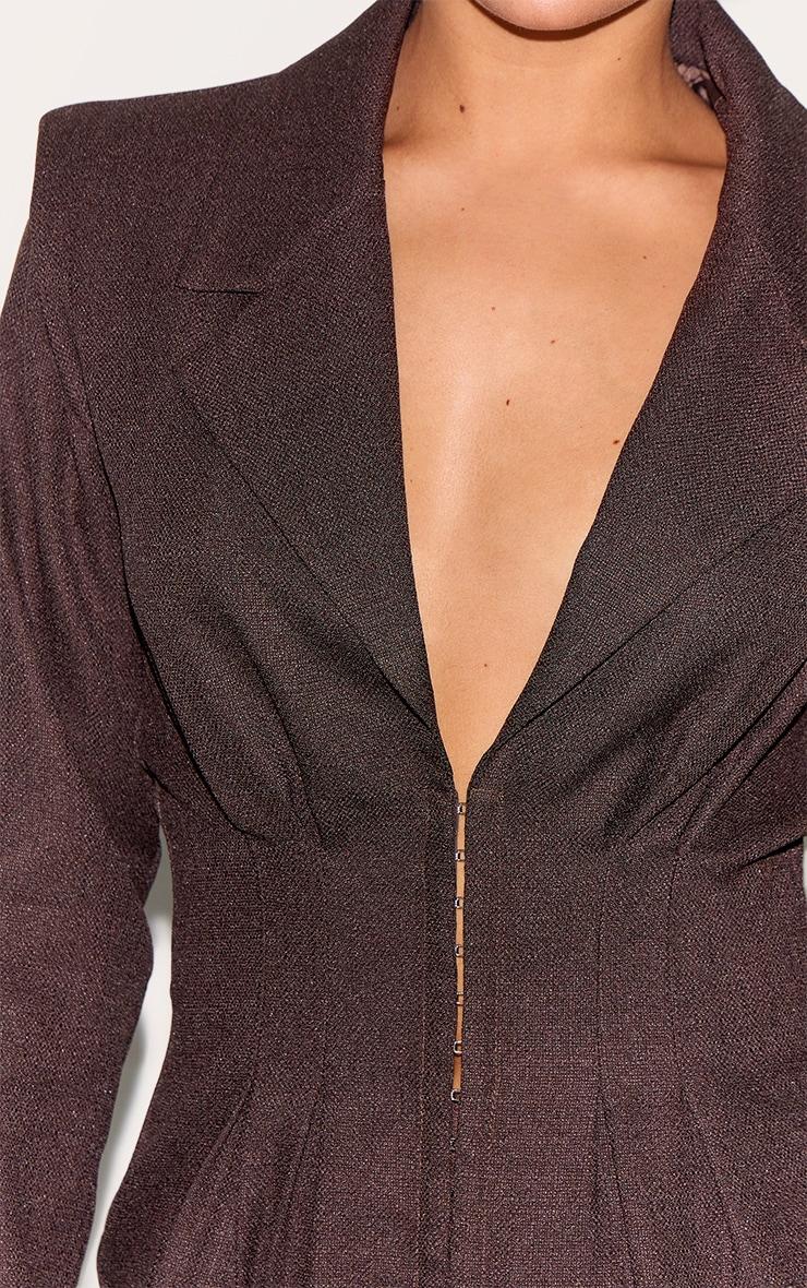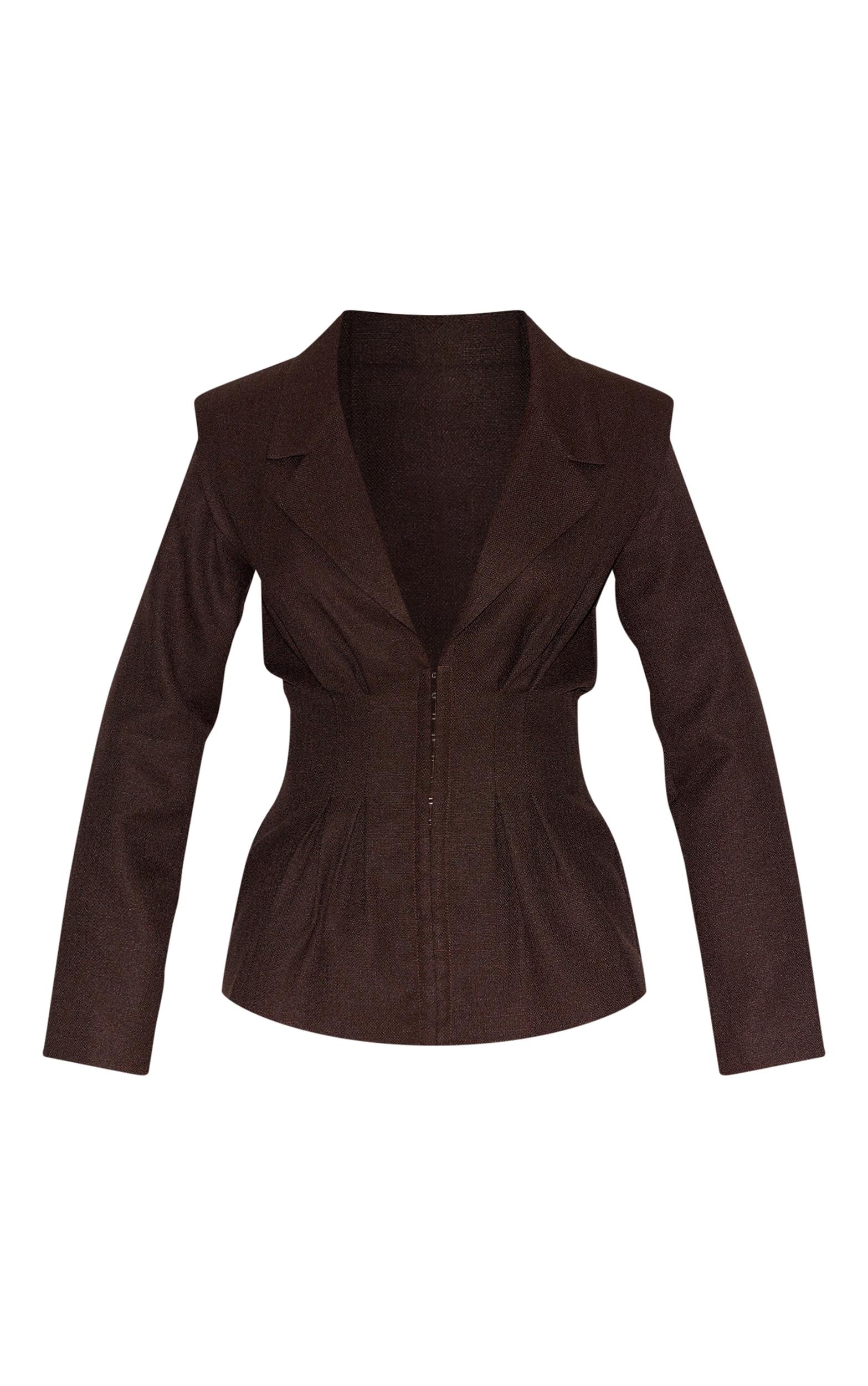 Say hello to your new season staple with this petite chocolate cinched waist blazer. Designed for comfort and style, this piece is made with hook and eye fastenings and a structural collar. Match with tonal shorts and kitten heels for a look that's sure to turn heads.Length approx 68.5cm/27inch (Based on sample size US 4)Model wears size UK 8/ EU 36/ AUS 8/ US 4Model Height - 5ft 5inchp]:!mb-4inch>Brand: PrettyLittleThingCategory: OuterwearProduct type: Fitted BlazerColor: ChocolateMaterial: Tailored WovenDesign: PlainNeckline: ShirtSleeves: LongOccasion: Evening