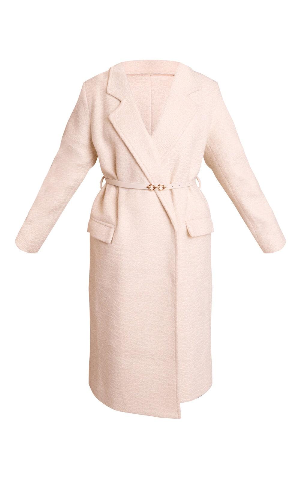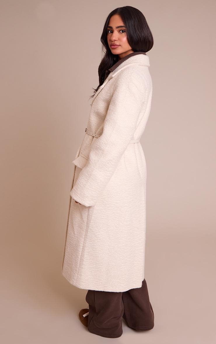 Command your cool. The petite cream belted wool look maxi coat redefines daywear with its confident, relaxed silhouette and clean longline cut, featuring broad notched lapels and a subtle double-breasted button fastening. A self-tie waist belt offers versatile styling, allowing you to cinch your look or wear it open for an effortless vibe. Layer this piece over an understated two piece set, like wide-leg pants and a simple collared top for an effortlessly pulled-together aesthetic, then ground the ensemble with a pair of sleek chunky boots and finish with a complementary clutch bag for an elevated daytime look that speaks volumes.Length approx 129.5cm/51inch (Based on sample size US 2)Model wears size UK 6/ EU 34/ AUS 6/ US 2Model Height - 5ft 2inchp]:!mb-4inch>Brand: PrettyLittleThingCategory: OuterwearProduct type: Wool Look CoatColor: CreamMaterial: Faux WoolOccasion: Day