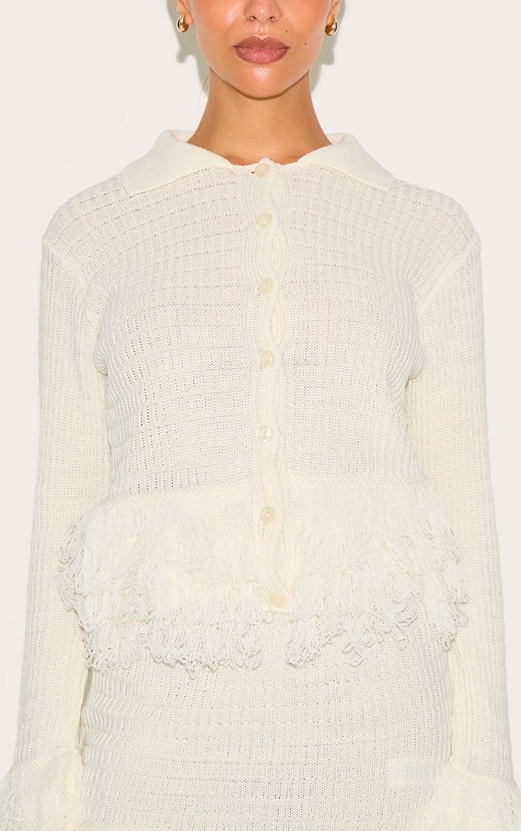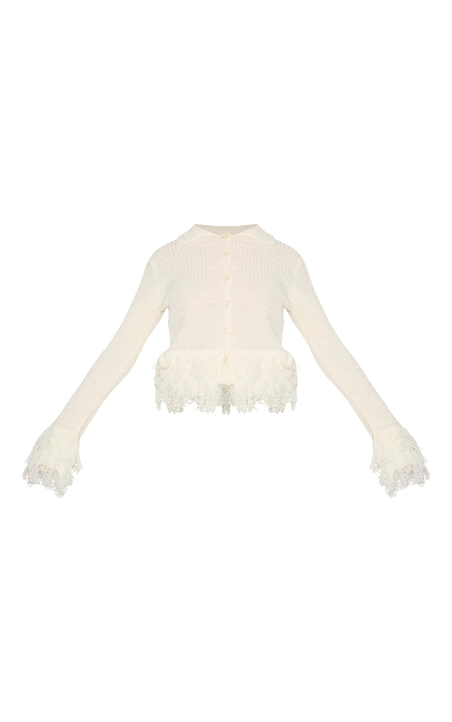 Make a statement in this petite cream button up fringe cardigan. Brought to you in cream knit material, this cardigan has unique fringing at the sleeves and hem and classic button fastenings. Style it with the matching fringe skirt, sleek kitten heels and refined gold earrings for a standout look.Model wears size XSModel Height - 5ft 4inchp]:!mb-4inch>Brand: PrettyLittleThingCategory: KnitwearProduct type: CardigansColor: CreamMaterial: KnitDesign: PlainNeckline: CrewSleeves: LongOccasion: Evening