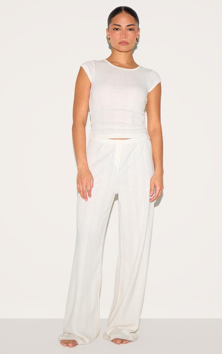 Cosy up this season in the petite cream pointelle long pajama top. Brought to you in cream fabric, this top has a short sleeve fit and pointelle detailing. Add it to the matching bottoms and fluffy slippers for a polished evening-in look. Model Height - 5ft 2inchp]:!mb-4inch>Brand: PrettyLittleThingCategory: Lingerie & NightwearProduct type: Cami TopColor: CreamMaterial: Cotton JerseyDesign: PlainNeckline: SlashSleeves: ShortOccasion: Day
