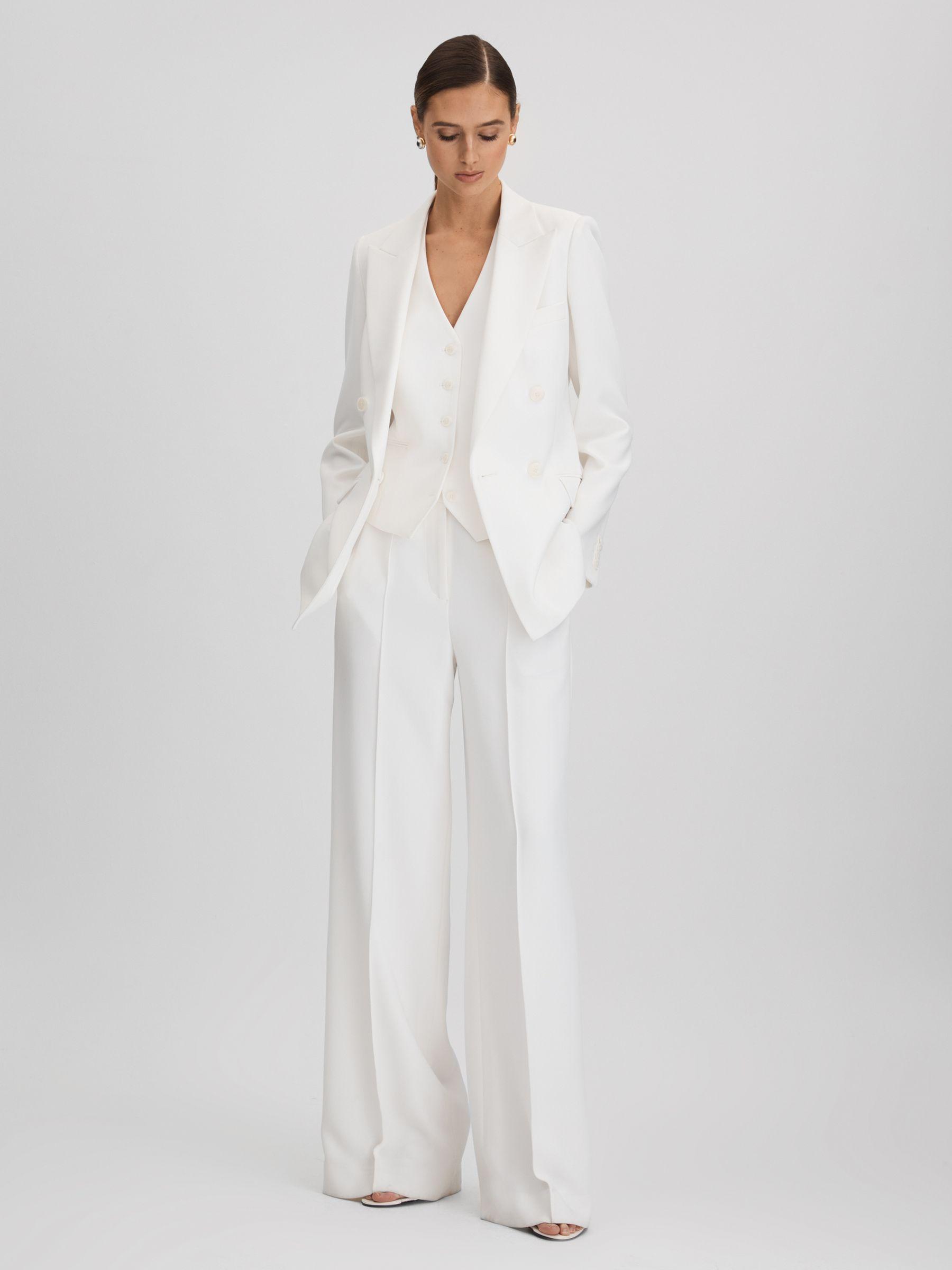 Petite Crepe Wide Leg Suit Trousers in White