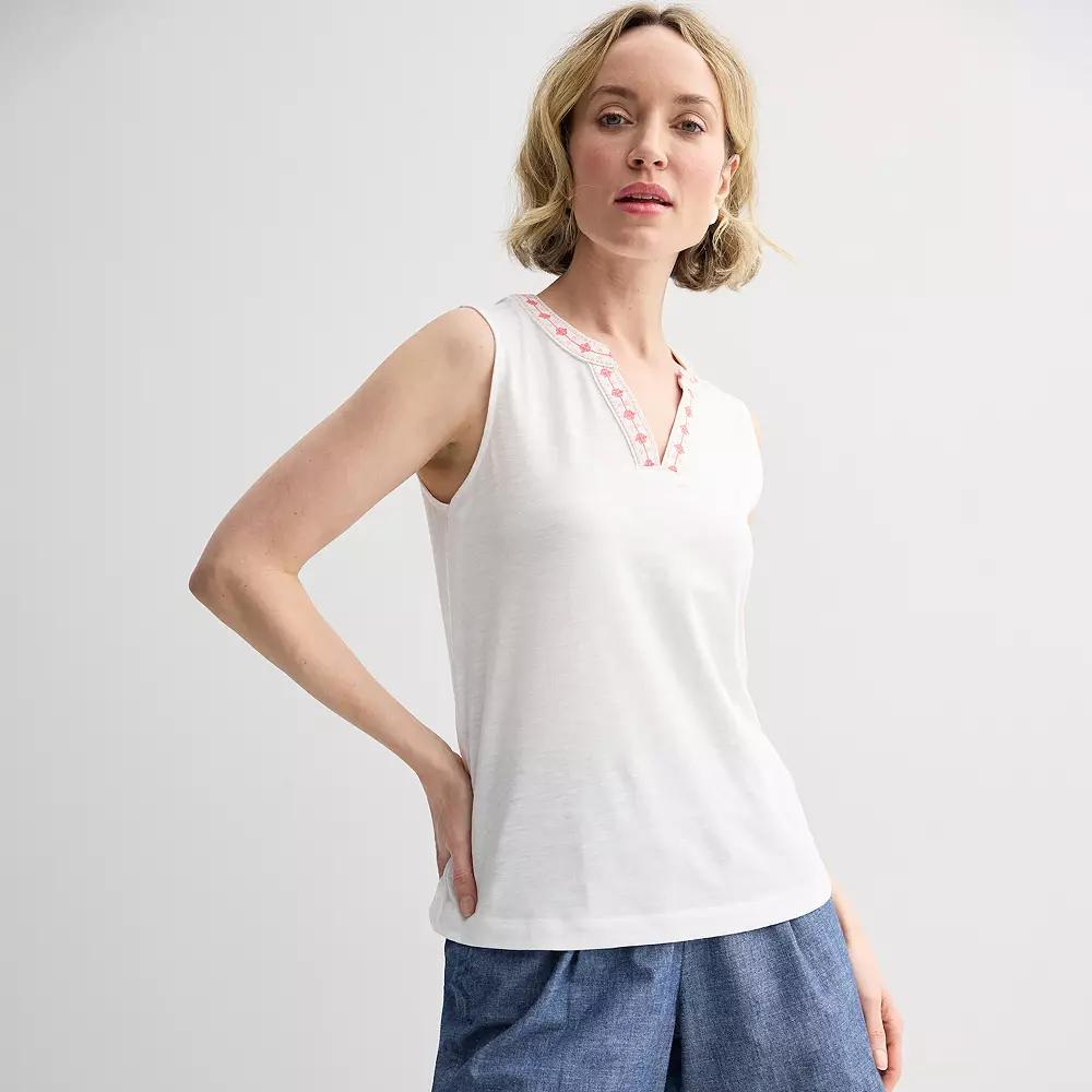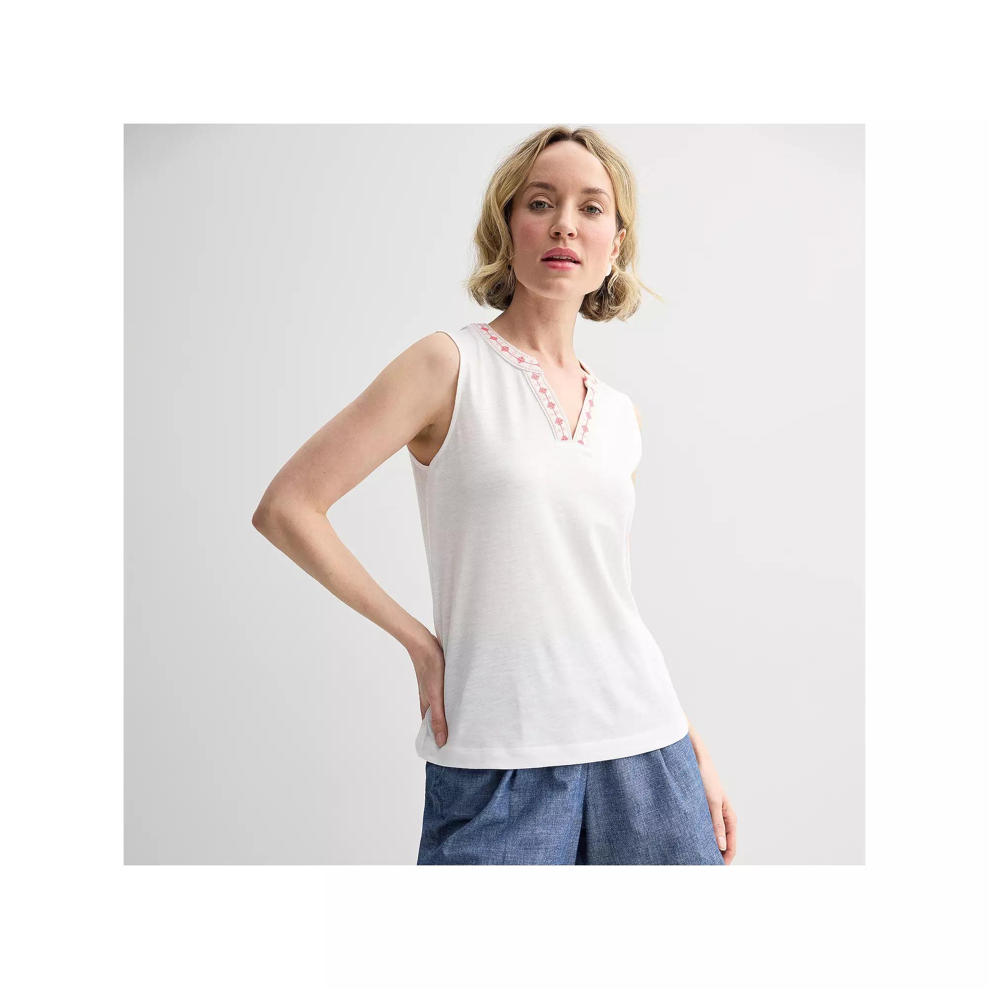 Elevate your casual wardrobe with this stunning embroidered edge tank top from Croft & Barrow. Designed for a flattering fit, it features a relaxed silhouette and a chic neckline, making it perfect for layering under a cardigan or wearing solo for a stylish day out. Click on this WOMEN'S GUIDE to find the perfect fit and more! - https://www.kohls.com/feature/womens-fit-guide.jsp. FEATURES: V-neck, Sleeveless, Embroidered edge, Rounded hem, Relaxed construction. FIT & SIZING: Regular fit, 24-in. length from shoulder to hem. FABRIC & CARE: Cotton, polyester, Machine wash, Imported. Size: XXL Petite. Color: Bright White. Gender: female. Age Group: adult. Material: RAYON / SPANDEX.