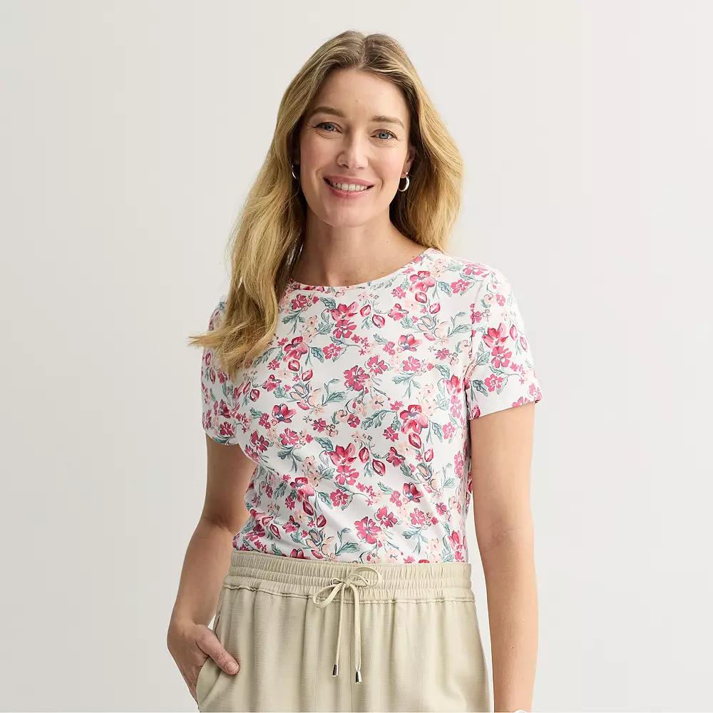 Give your wardrobe an update with this petites' top from Croft & Barrow. Click on this WOMEN'S GUIDE to find the perfect fit and more! - https://www.kohls.com/feature/womens-fit-guide.jsp. Crewneck, Short sleeves. FABRIC & CARE: Cotton, polyester, Machine wash, Imported. Size: XXL Petite. Color: Pink Classy Floral. Gender: female. Age Group: adult. Material: 1X1 RIB.