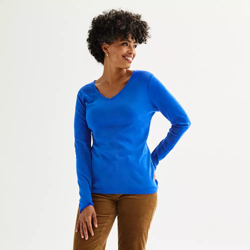 Upgrade your wardrobe essentials with this petites' Croft & Barrow v-neck topClick on this WOMEN'S GUIDE to find the perfect fit and more!Upgrade your wardrobe essentials with this petites' Croft & Barrow v-neck topClick on this WOMEN'S GUIDE to find the perfect fit and more!PRODUCT FEATURES V-Neck Long sleevesFABRIC & CARE Cotton Machine wash Imported Size: L Petite. Color: Wilder Blue. Gender: female. Age Group: adult.