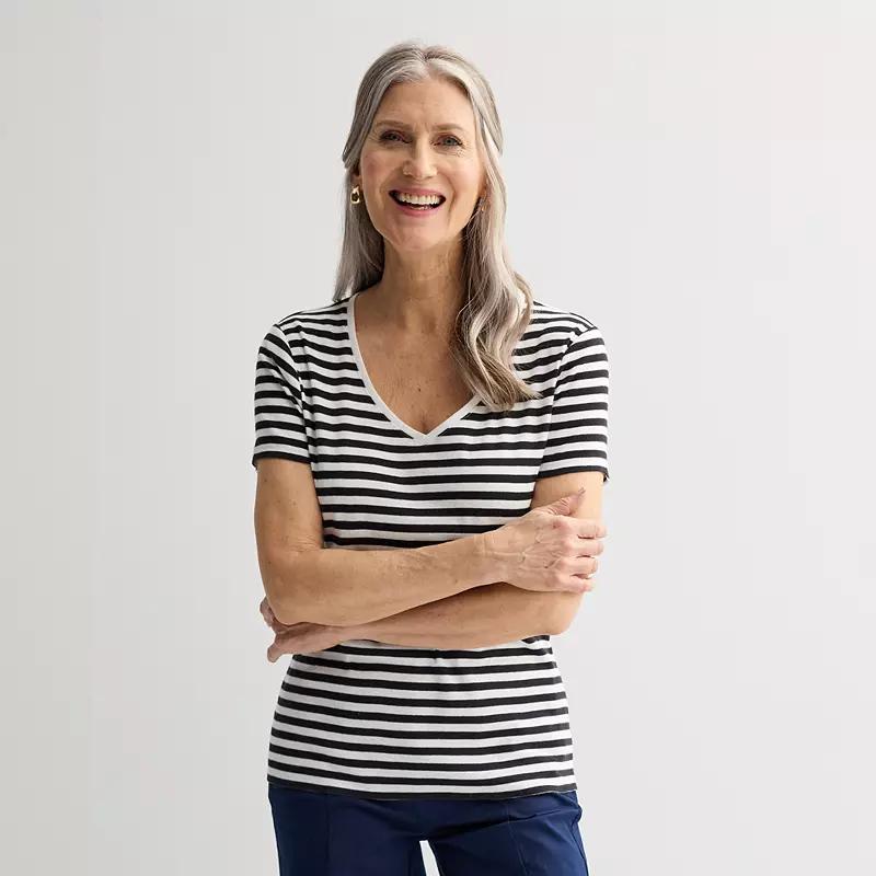 Give your casual wardrobe an update with this petites' top from Croft & Barrow.Click on this WOMEN'S GUIDE to find the perfect fit and more!Give your casual wardrobe an update with this petites' top from Croft & Barrow.Click on this WOMEN'S GUIDE to find the perfect fit and more!PRODUCT FEATURES V-neck Short sleevesFABRIC & CARE Cotton Machine wash Imported Size: XXL Petite. Color: Black Rail Stripe. Gender: female. Age Group: adult.