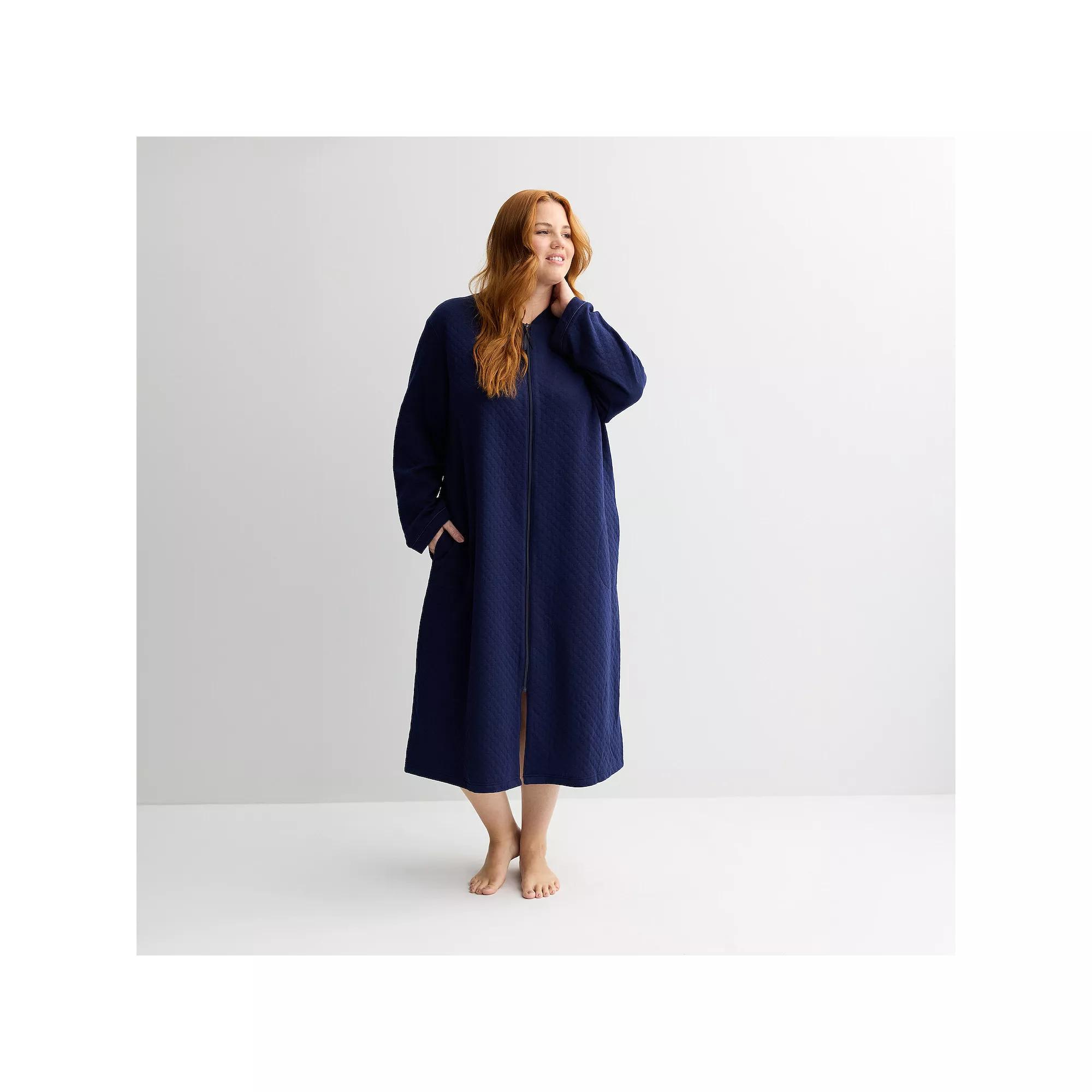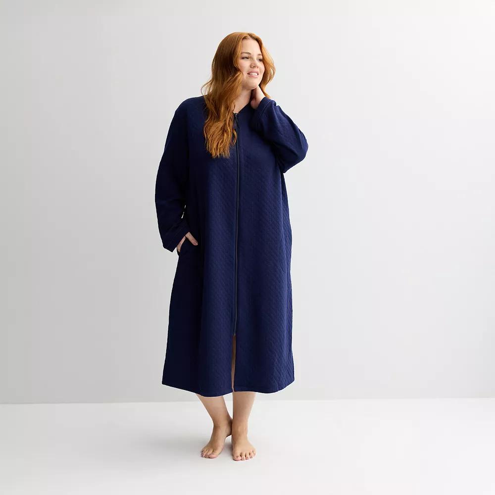 Wrap yourself in the cozy charm of Croft & Barrow long quilted zip robe that blends style with comfort seamlessly. Perfect for lazy mornings and cozy evenings, this robe will make you feel like you’re gently wrapped in a cloud as you sip your coffee or curl up with a good book. Click on this INTIMATES & SLEEPWEAR GUIDE to find the perfect fit and more! - https://www.kohls.com/feature/womens-sleepwear-and-intimates-guide.jsp. FEATURES: Long quilted design for added warmth, Soft and cozy feel for comfort. FIT & SIZE: Full length front zipper closure, 45-in. length from shoulder to hem. MATERIAL & CARE: Body: polyester, cotton, Filling: polyester, Machine wash and tumble dry low. DETAILS: V-neck, Long sleeves, 2 side pockets, Imported. Size: S Petite. Color: Navy Rae. Gender: female. Age Group: adult. Material: POLY BLEND.