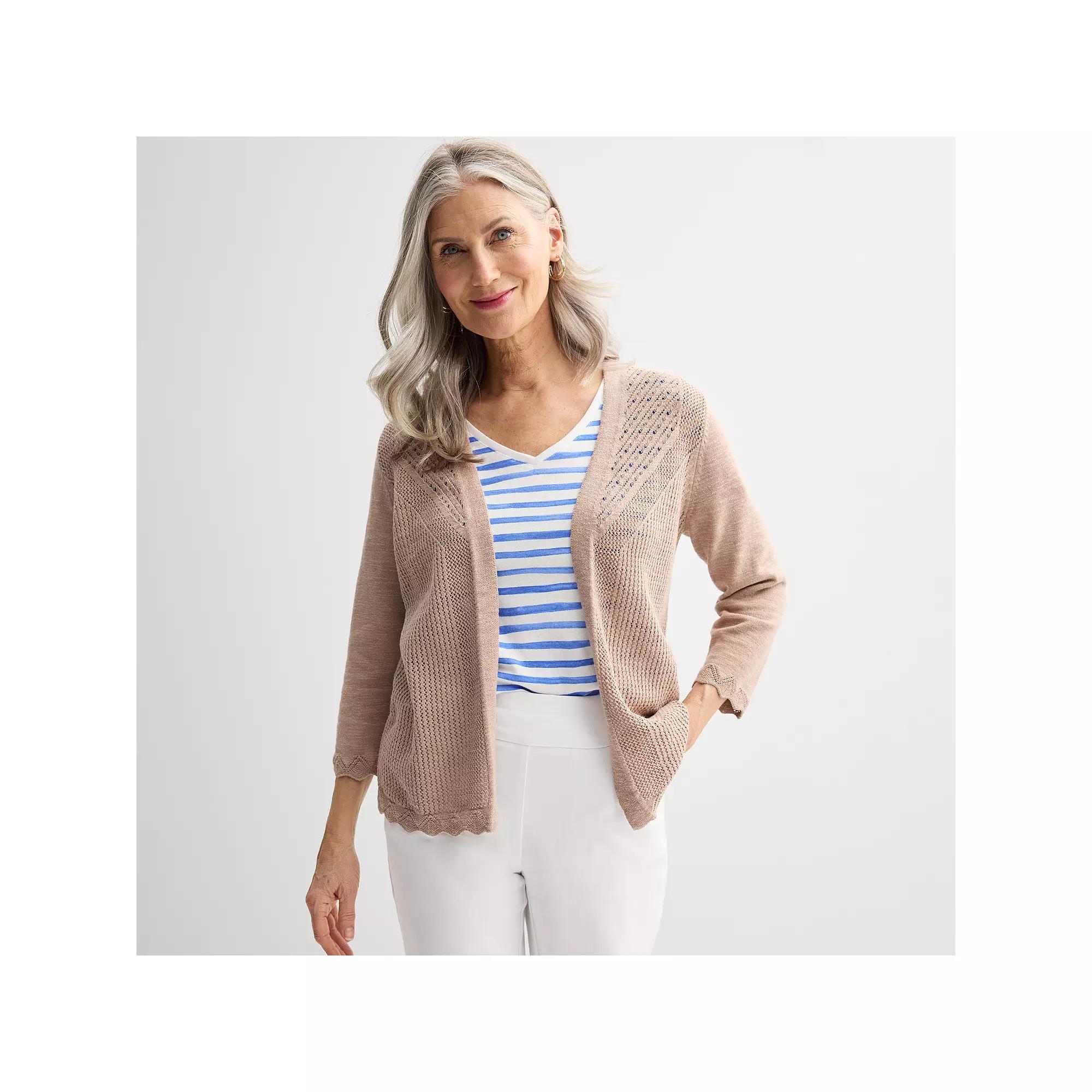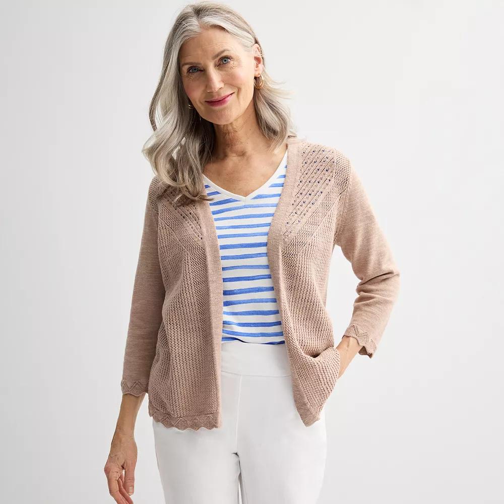 Keep warm and stylish with this women's Croft & Barrow pointelle open front cardigan. Click on this WOMEN'S GUIDE to find the perfect fit and more!FEATURES Soft jersey construction Open front Long set-in sleevesFIT & SIZING Casual fit with slight ease in body 24 3/4-in. length from shoulder to hemFABRIC & CARE Cotton, rayon, nylon Machine wash ImportedRESPONSIBLE Supports more sustainable cotton farming Size: S Petite. Color: Tara. Gender: female. Age Group: adult. Material: Cotton Blend.