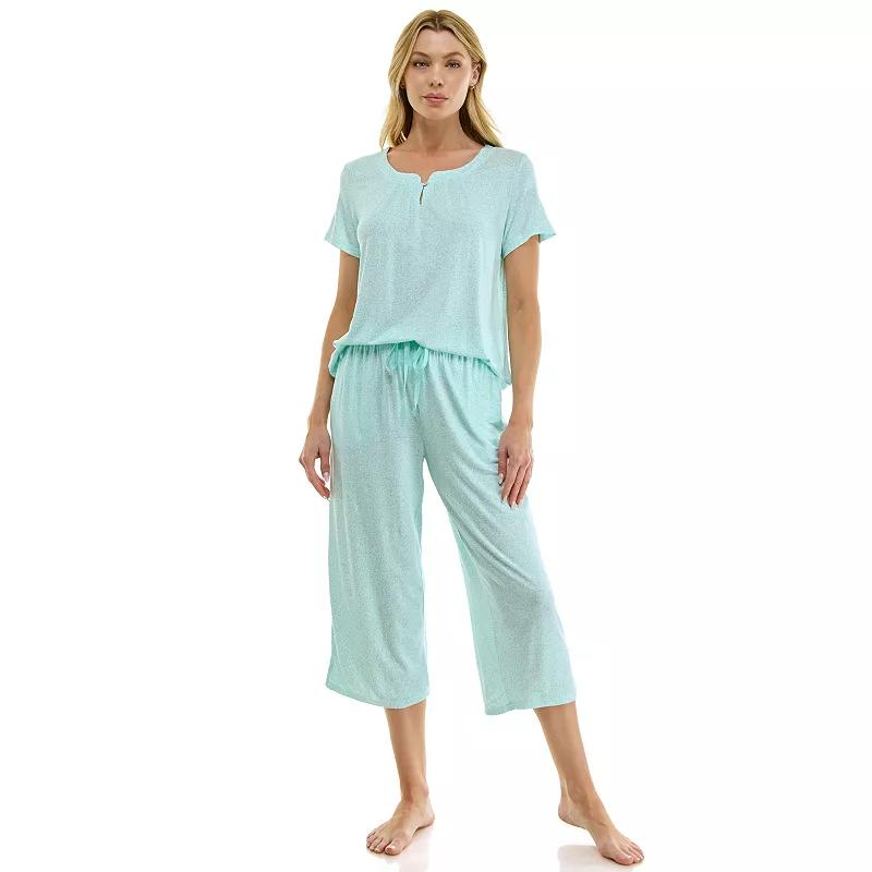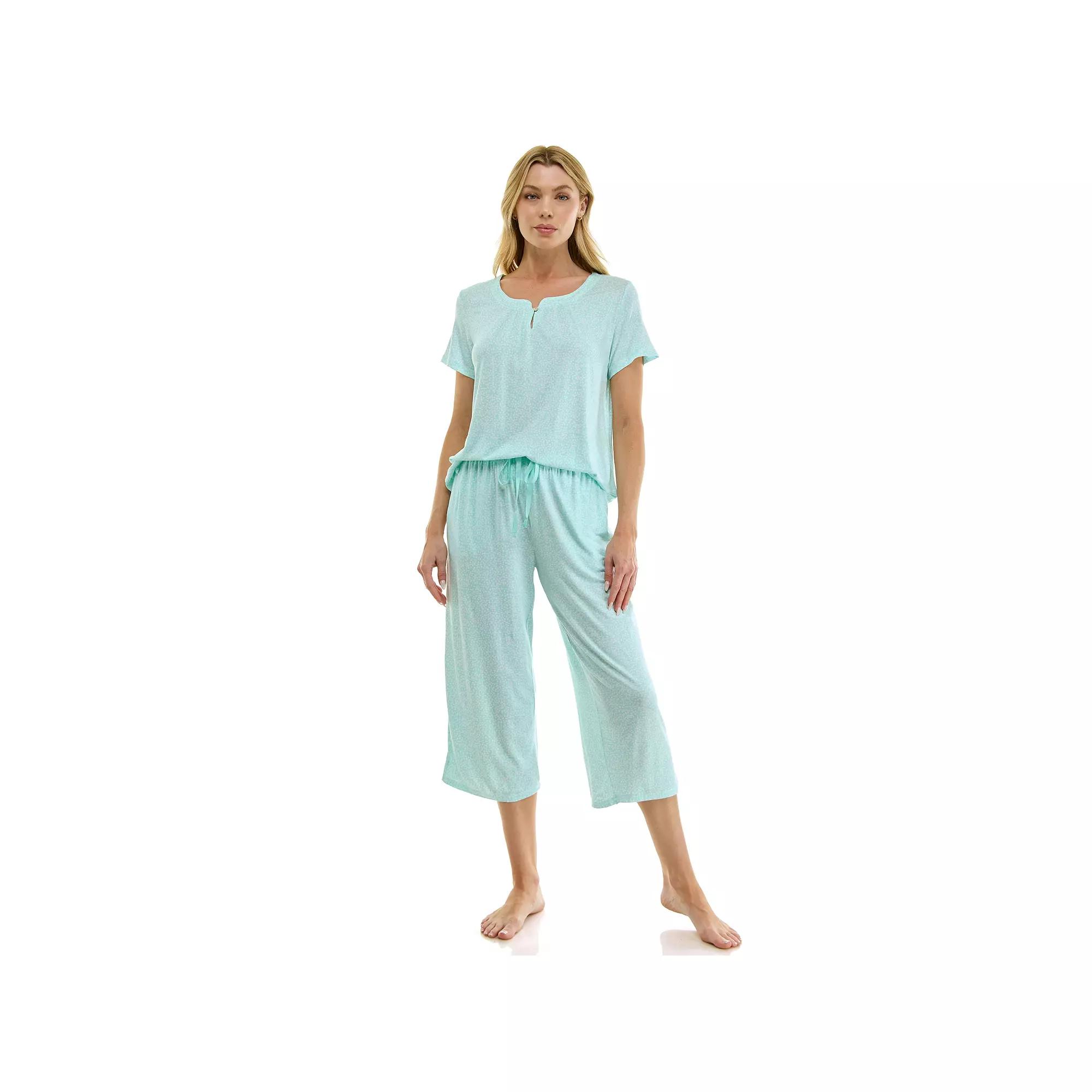 Elevate your sleep routine with this delightful Croft & Barrow sleep set that is as soft as a cloud and designed for maximum comfort. Featuring a chic scoopneck top with sweet pleats and keyhole detail, paired with easygoing capri pants complete with pockets, this set is perfect for lounging in style while enjoying those lazy weekend mornings or movie nights at home. Click on this INTIMATES & SLEEPWEAR GUIDE to find the perfect fit and more! - https://www.kohls.com/feature/womens-sleepwear-and-intimates-guide.jsp. FEATURES: Soft, comfortable, and lightweight fabric, Versatile for all-weather, year-round wear, Added spandex for ease of movement, Keyhole button detail at center front. FIT & SIZE: Relaxed fit, 28 1/2-in. length from shoulder to hem, High rise sits below the natural waistline, Petite: 19-in. inseam, Wide 12-in. leg opening, Drawstring waistband. MATERIAL & CARE: Modal, spandex, Machine wash. DETAILS: Includes top and capri bottoms, 1-button front closure, Scoopneck, Short sleeves, 2 side seam pockets, Imported. Size: XL Petite. Color: Delicate Ptl Strm Aqua. Gender: female. Age Group: adult.